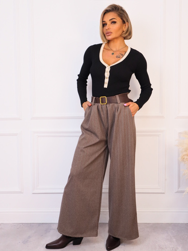 SPODNIE MATERIAŁOWE ELEGANCKIE Z MANKIETEM W PASIE- FANGO