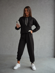 SZTRUKSOWY KOMPLET MARYNARKA+ SZEROKIE SPODNIE- CZARNY