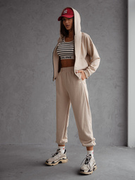 SZTRUKSOWY KOMPLET MARYNARKA+ SZEROKIE SPODNIE- CIEMNY BEŻ