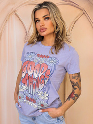 ZIELONY DEKATYZOWANY T-SHIRT Z PRINTEM