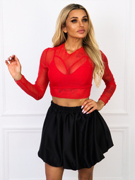TIULOWA BLUZKA Z TOPEM I OZDOBNYMI RAMIACZKAMI- CZERWONA