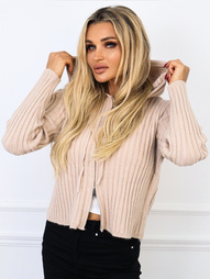 DZIANINOWA BLUZA W PRĄŻEK Z KAPUREM NA SUWAK- BRĄZOWA