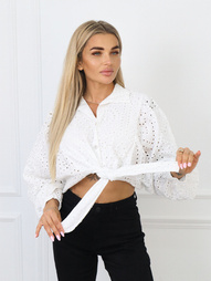 BLUZKA HISZPANKA W KWIATY Z WIĄZANIEM NA RĘKAWACH- BIAŁA