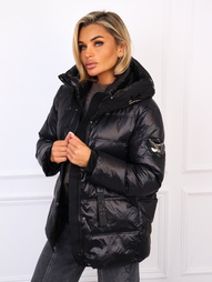 CZARNA PIKOWANA KURTKA ZIMOWA Z OZDOBNYMI WSTAWKAMI