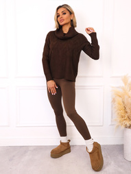 SWETER JEDNOLITY DZIANINOWY Z NASZYJNIKIEM- CZEKOLADOWY