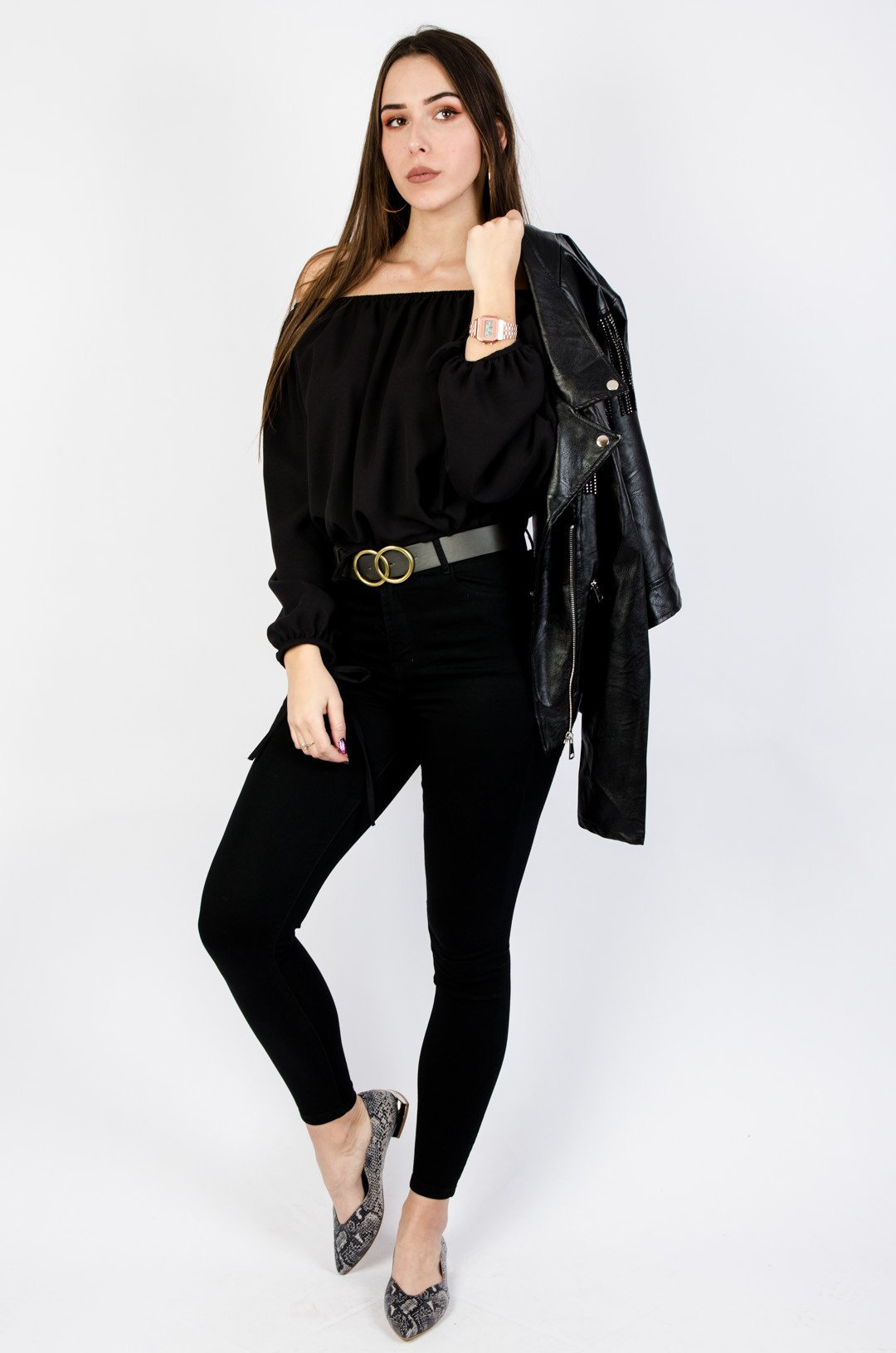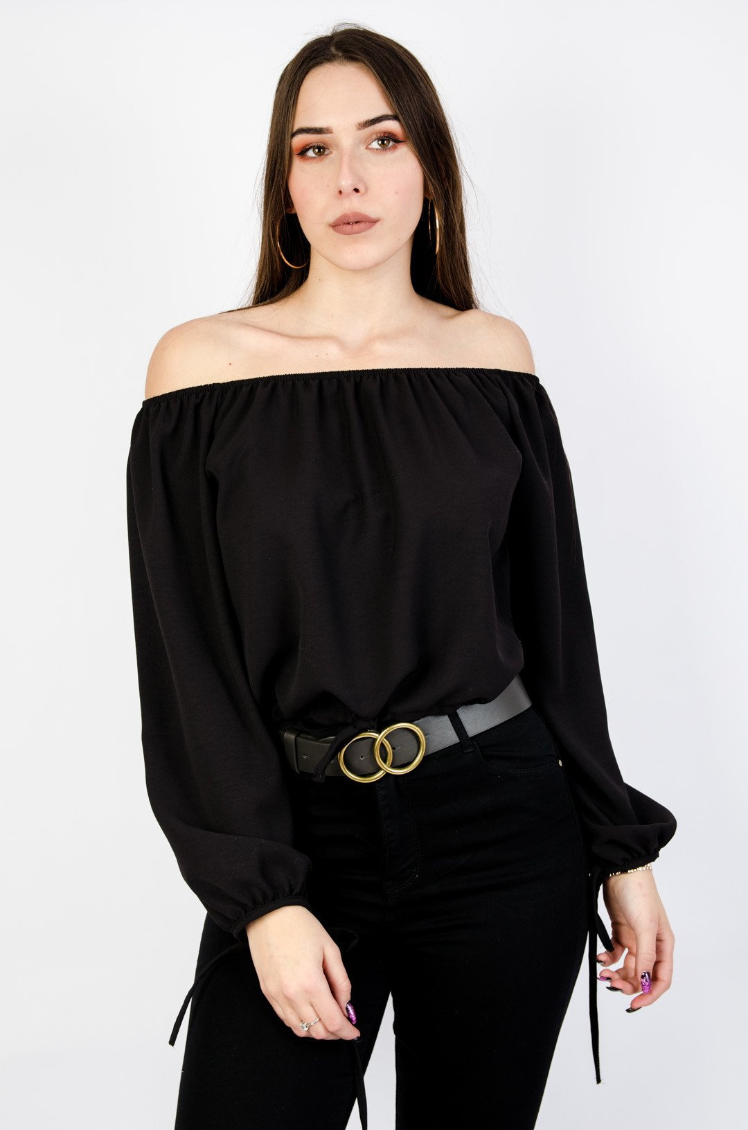 CZARNA BLUZKA CROP TOP Z HISZPAŃSKIM DEKOLTEM