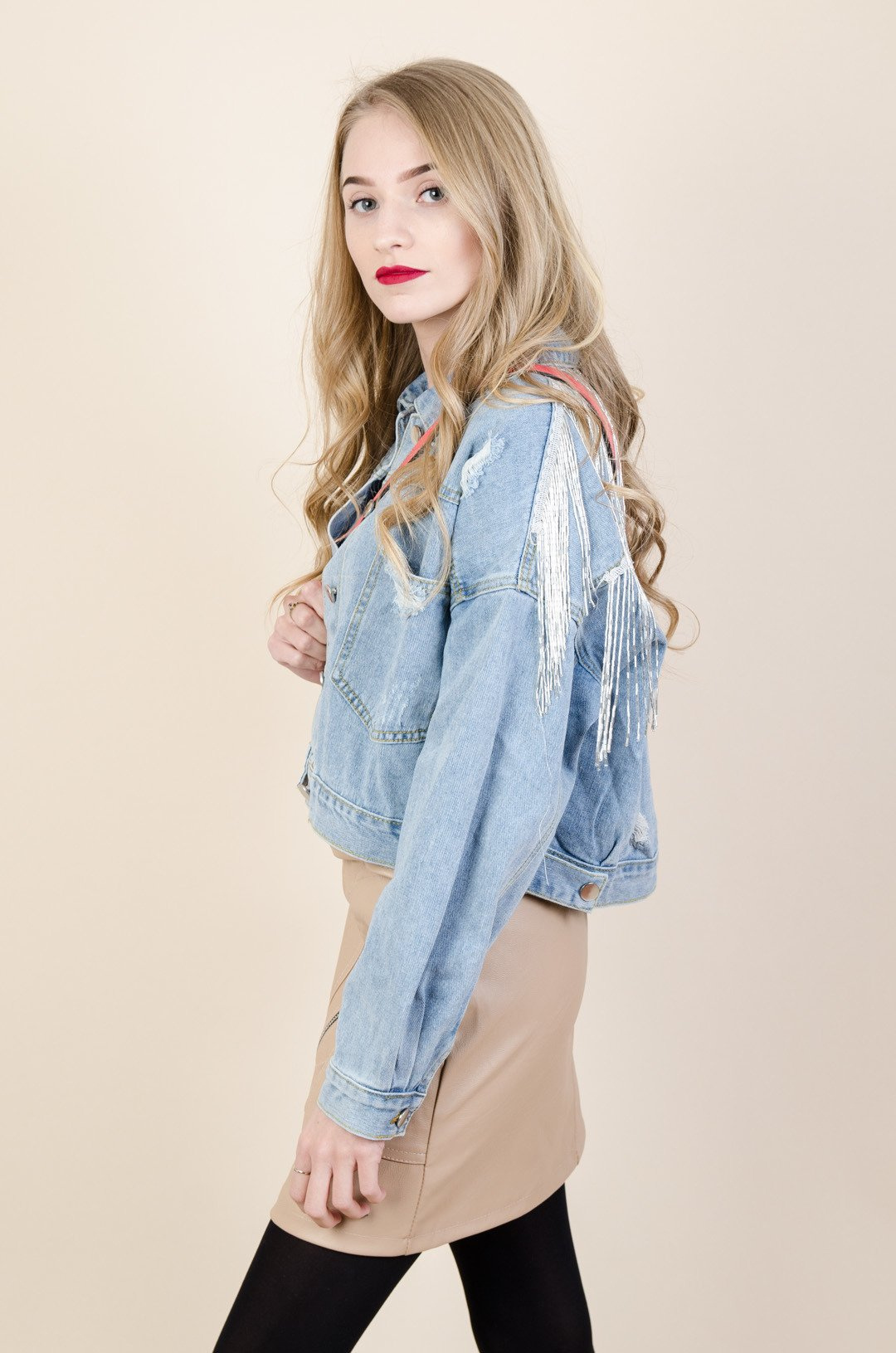 KURTKA JEANSOWA Z FRĘDZLAMI NA PLECACH