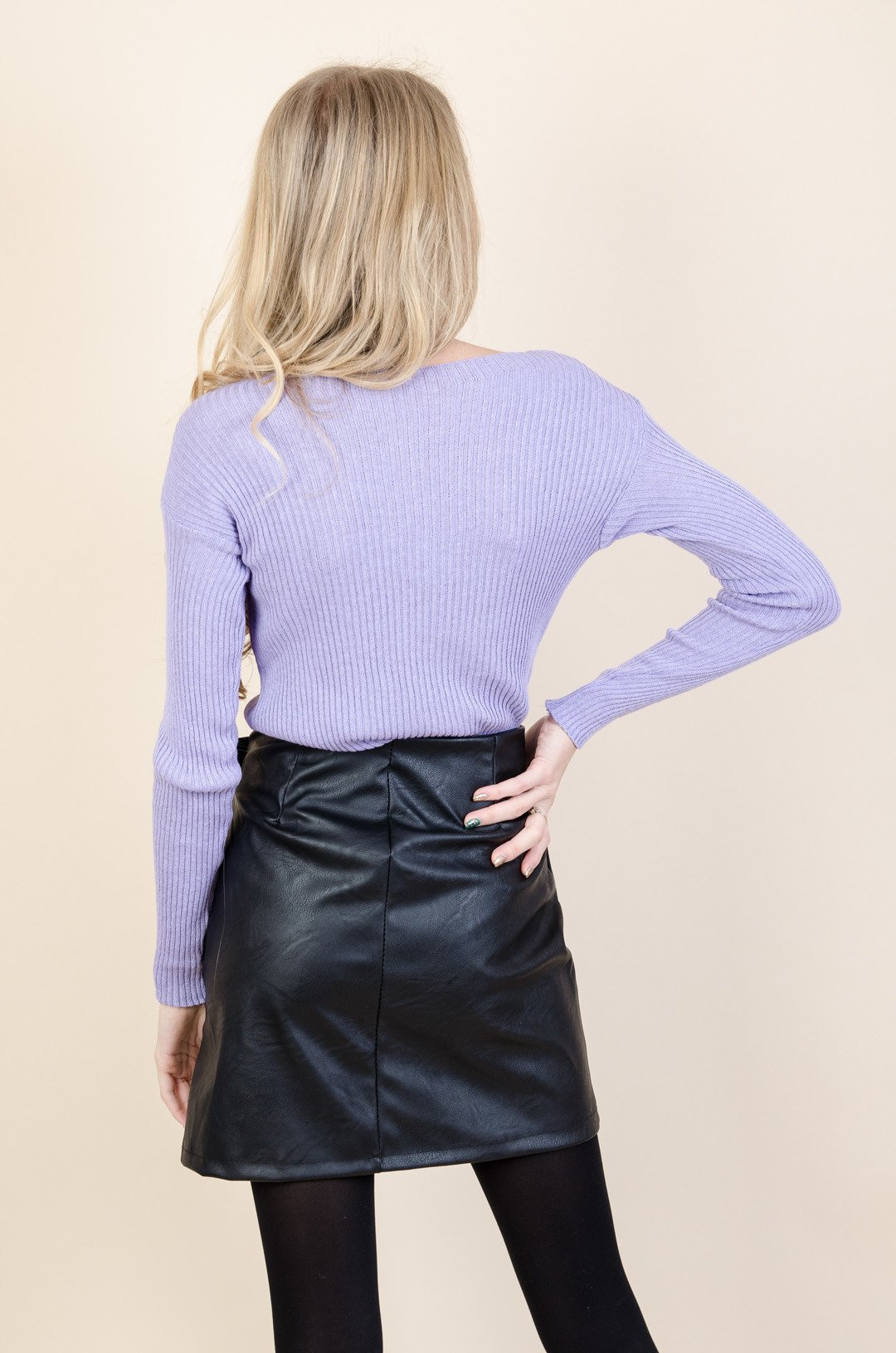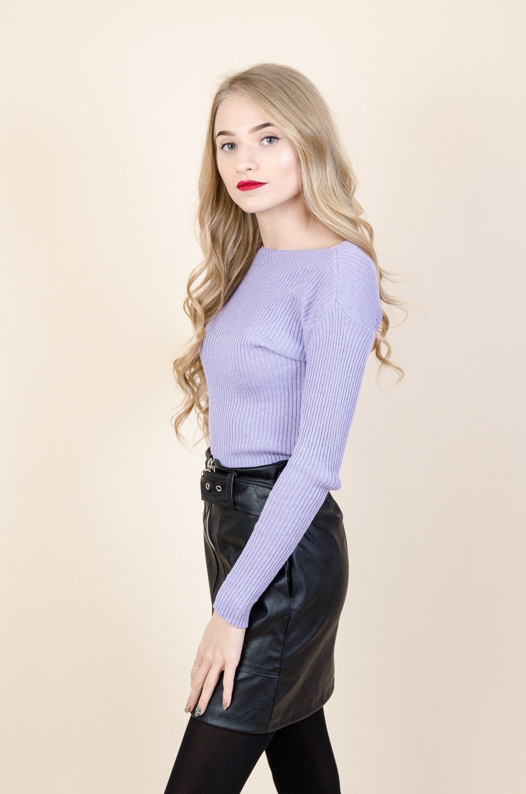 PRĄŻKOWANY SWETER W KOLORZE FIOLETOWYM