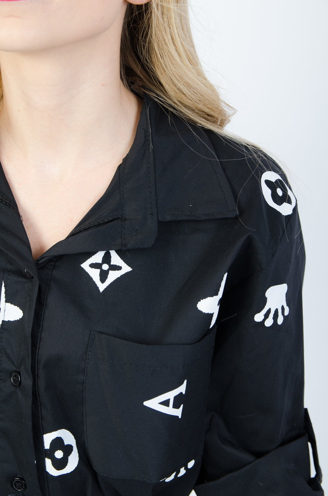 DŁUGA CZARNA ASYMETRYCZNA KOSZULA Z NADRUKIEM