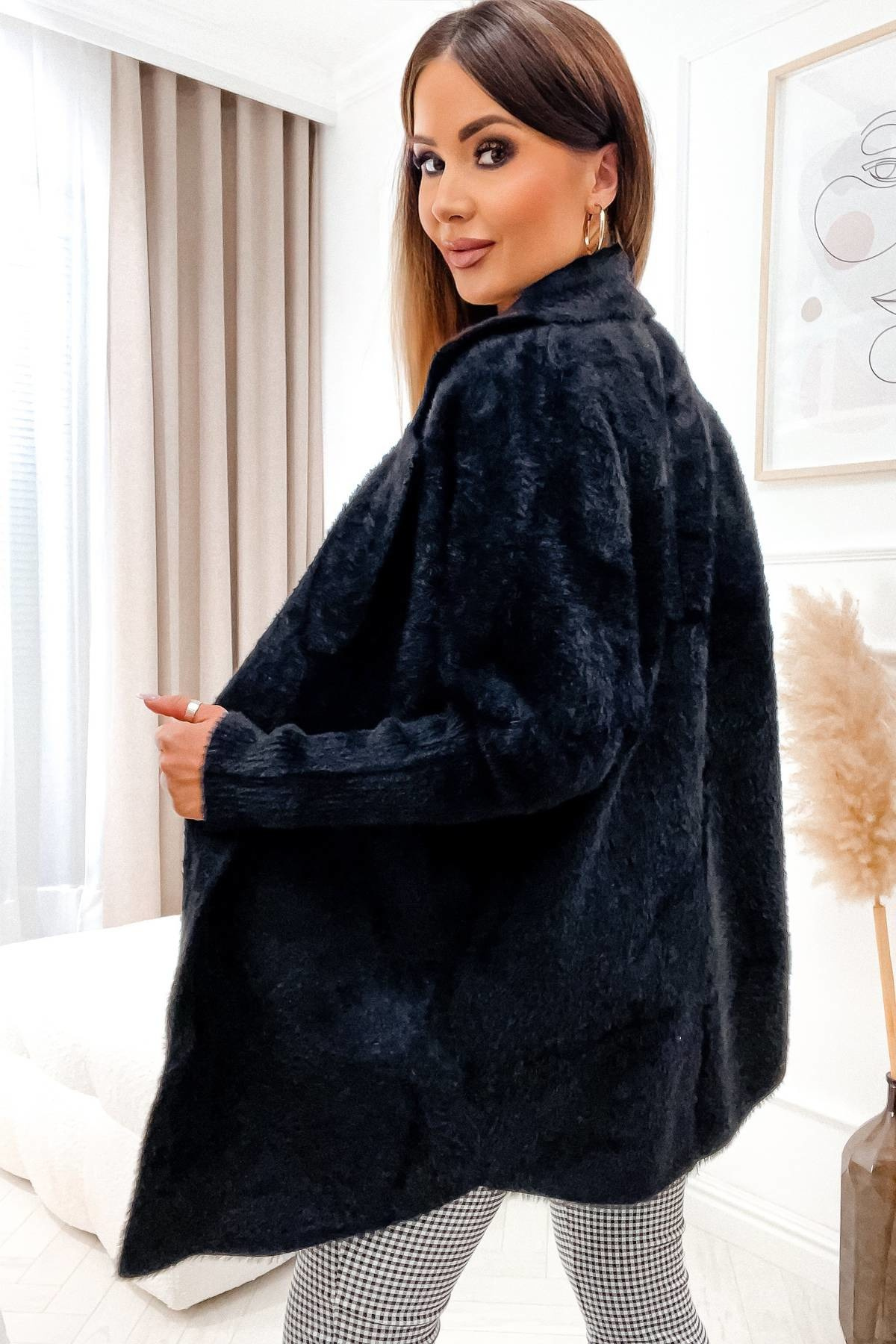 PŁASZCZ DŁUGI WEŁNIANY ALPAKA- CZARNY