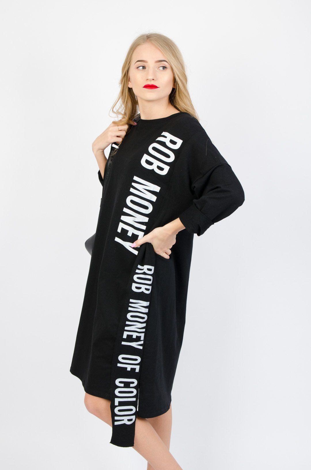 ASYMETRYCZNA DZIANINOWA SUKIENKA Z NAPISEM "ROB MONEY"