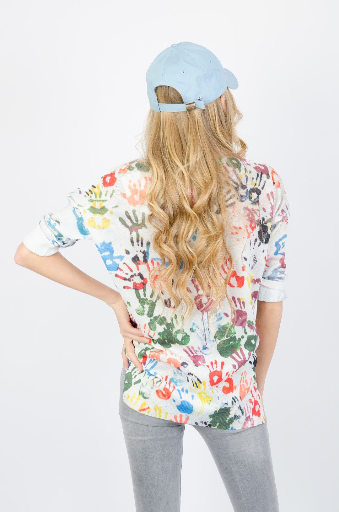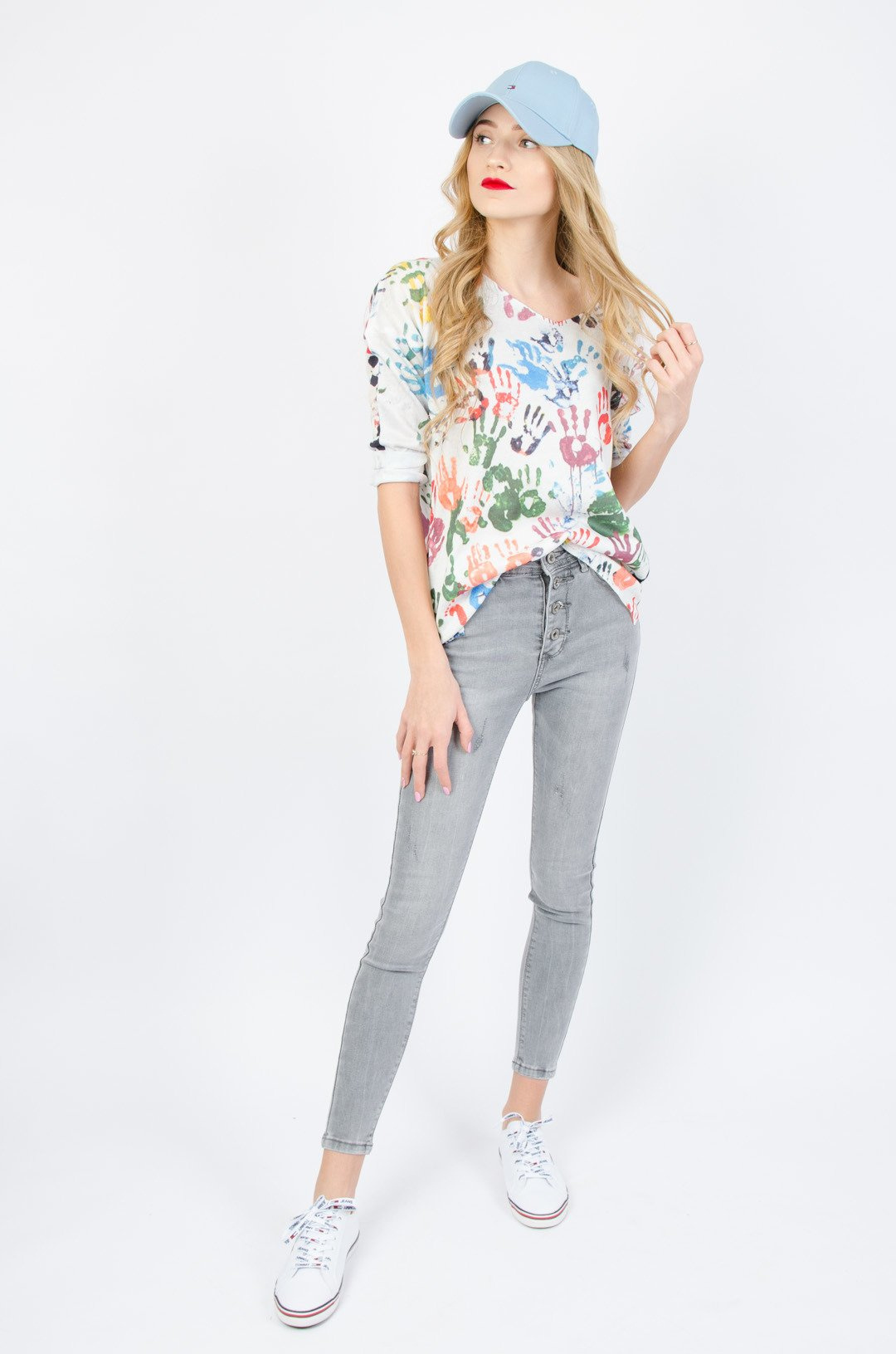 BIAŁA BLUZKA W SZPIC Z KOLOROWYM NADRUKIEM