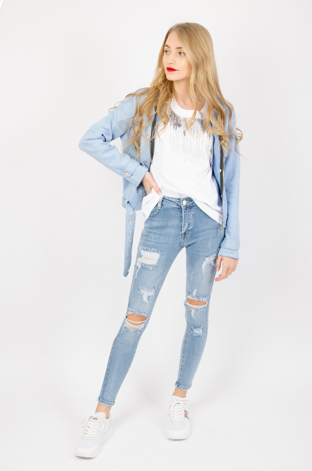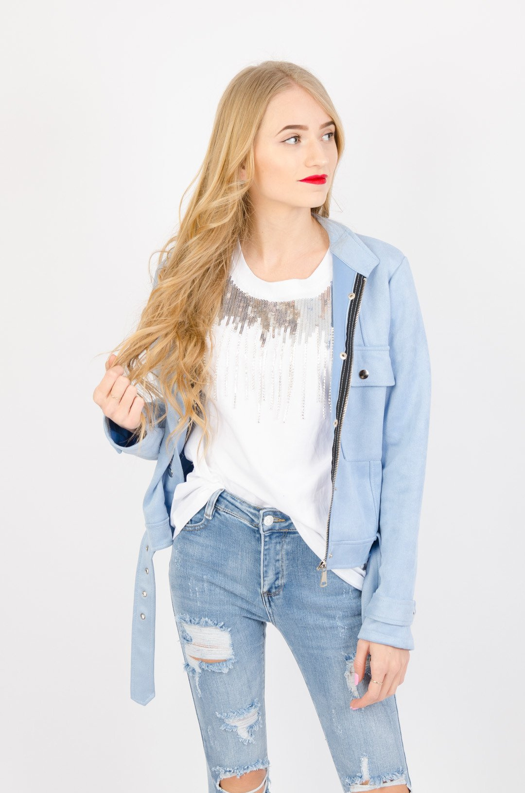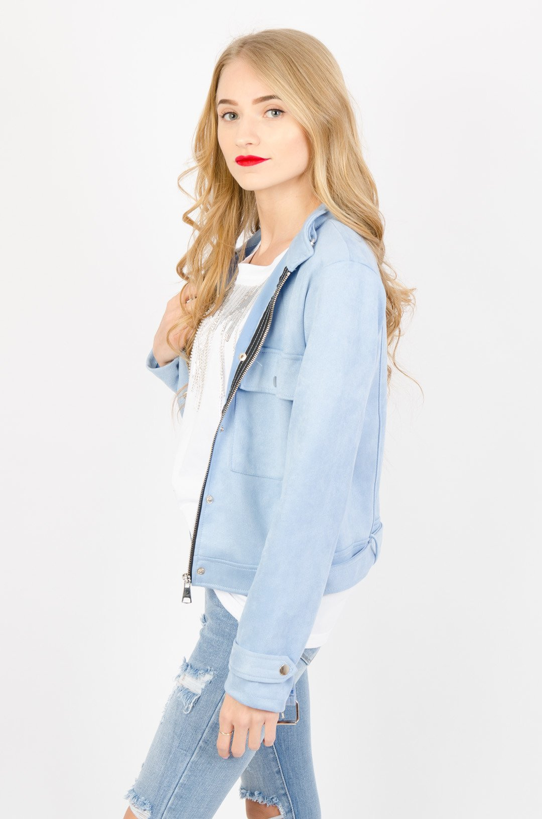 RAMONESKA Z IMITACJI ZAMSZU W KOLORZE NIEBIESKIM