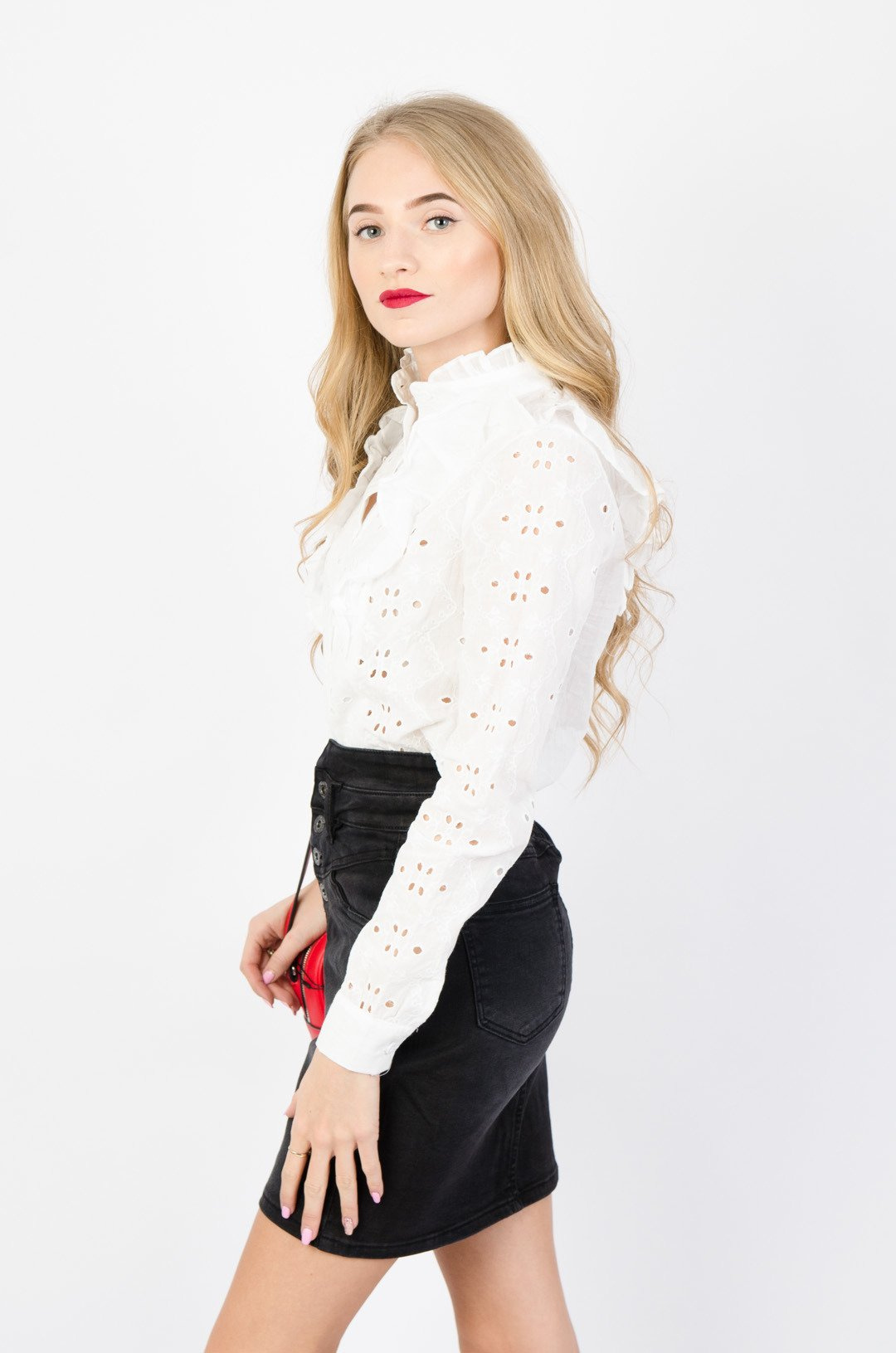 BIAŁA AŻUROWA KOSZULA W KWIATY