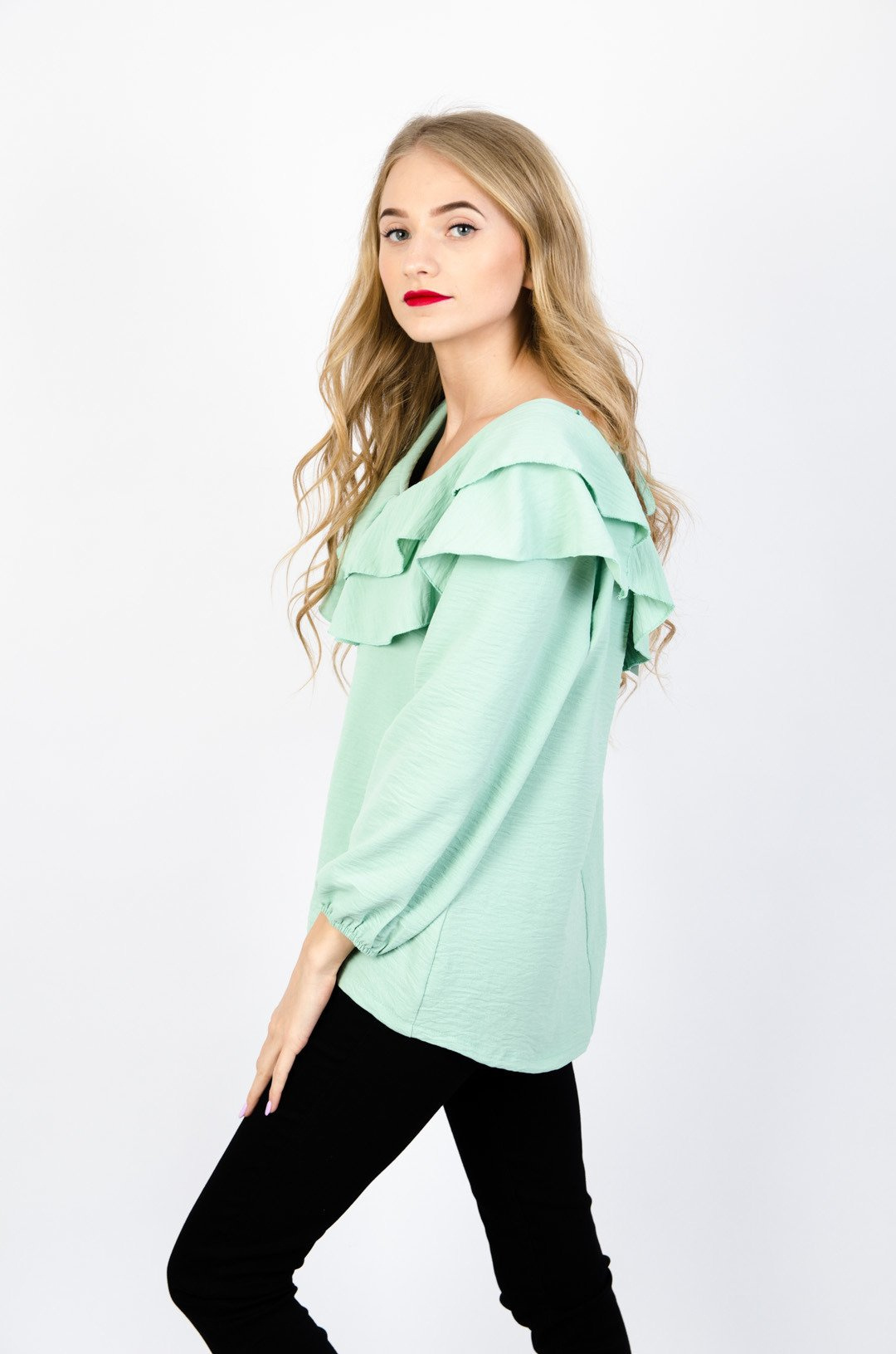 ZIELONA BLUZKA Z KREPY Z WYCIĘCIEM NA PLECACH