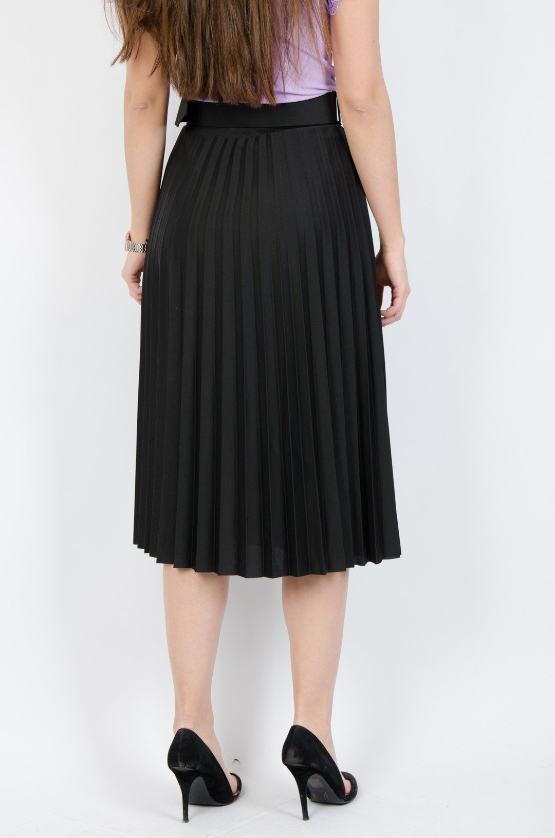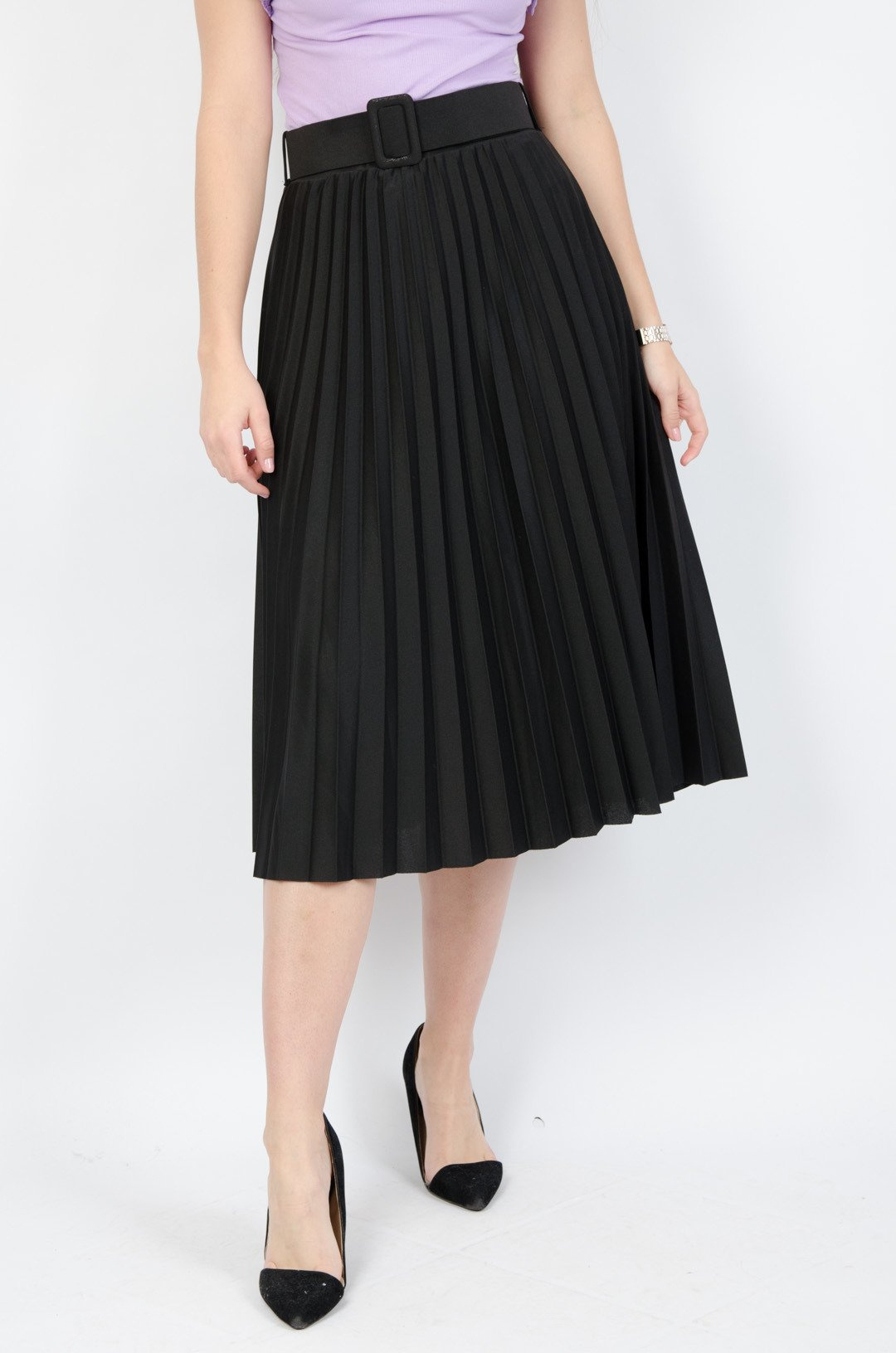 Czarna plisowana spódnica midi z paskiem