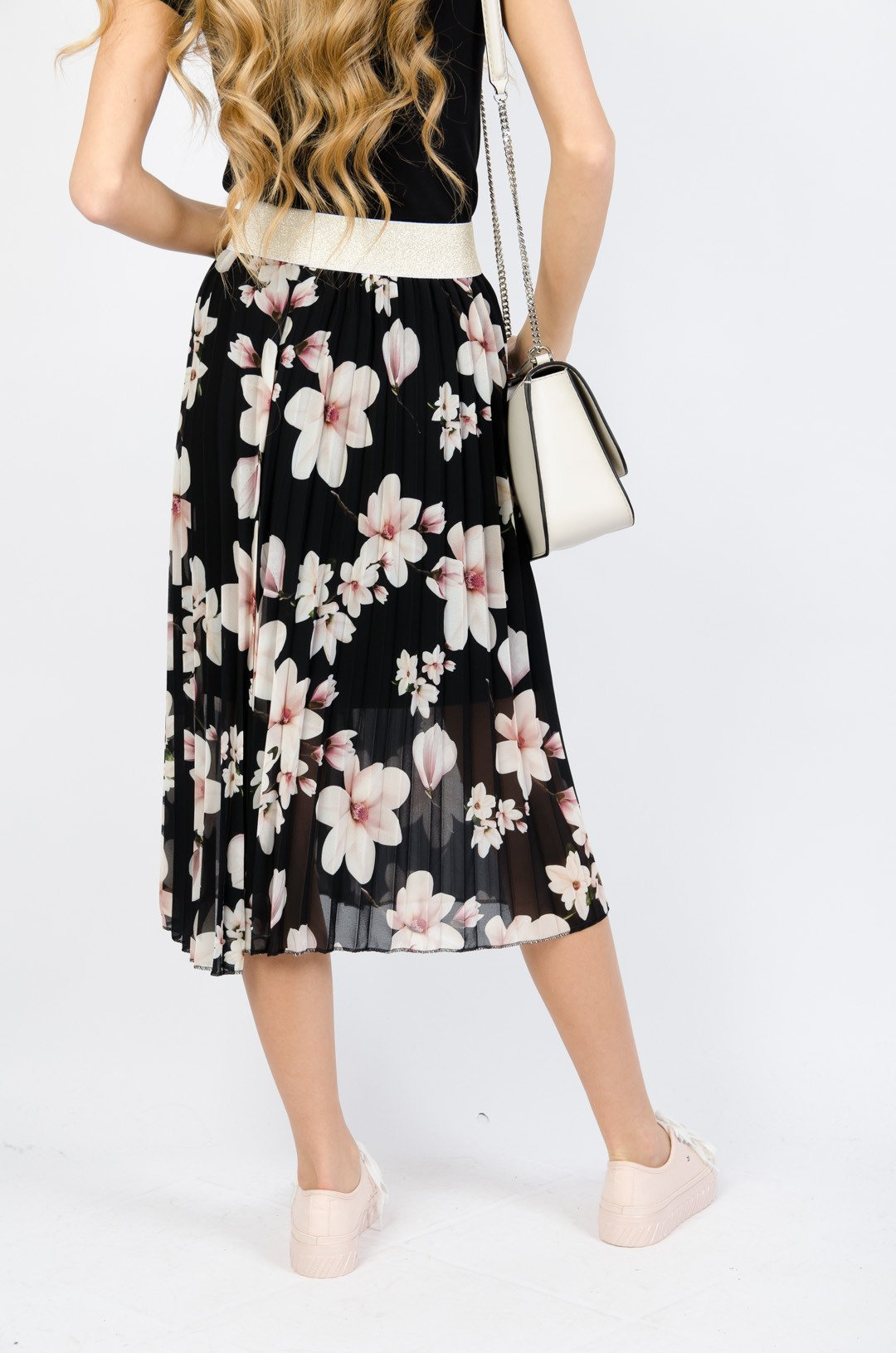 PLISOWANA SPÓDNICA W KWIATY W KOLORZE CZARNYM