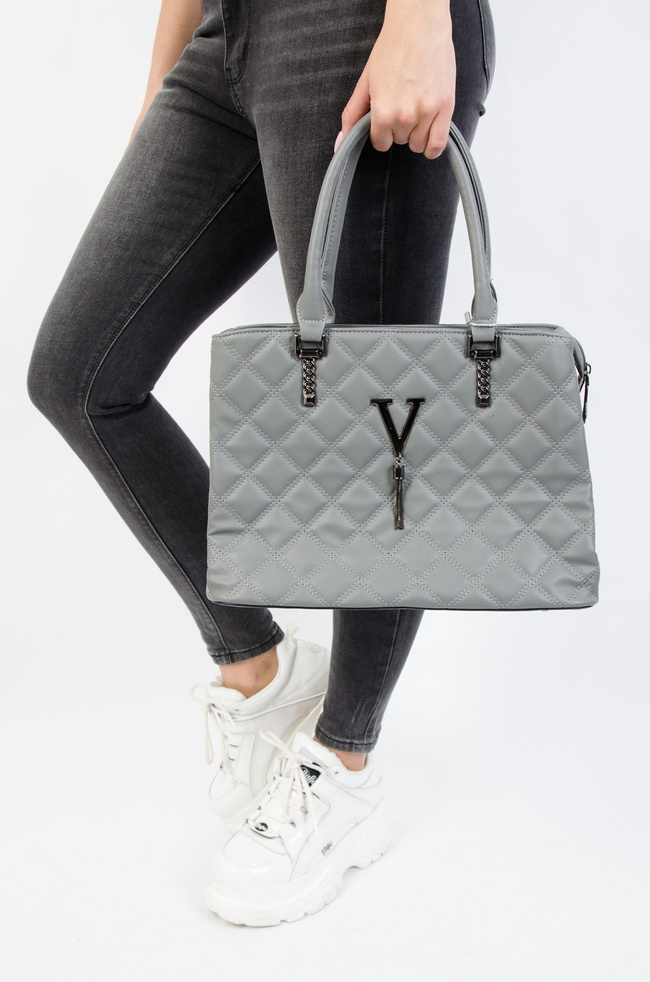 Szara pikowana torebka z ozdobnym łańcuszkiem