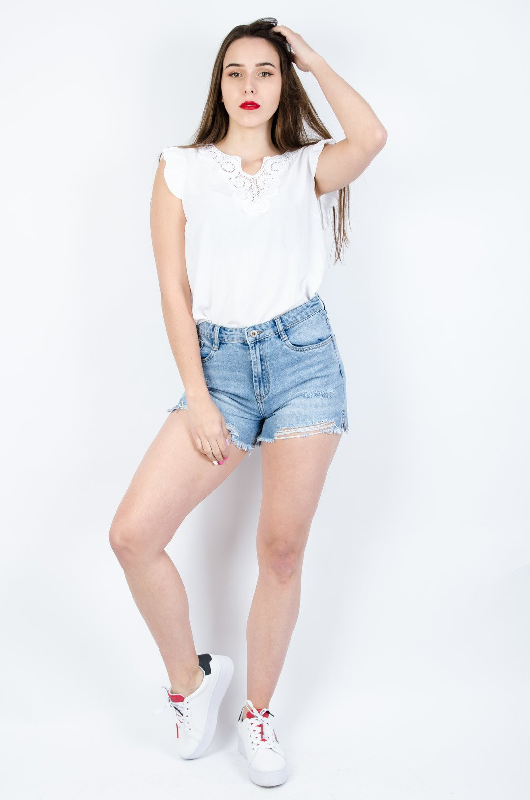 JASNE JEANSOWE SZORTY Z PRZETARCIAMI