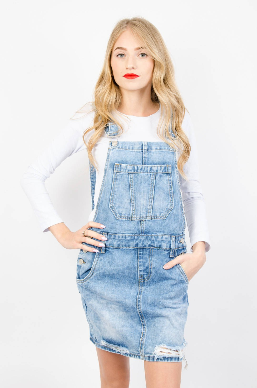 JEANSOWA OGRODNICZKA Z SZARPANIEM