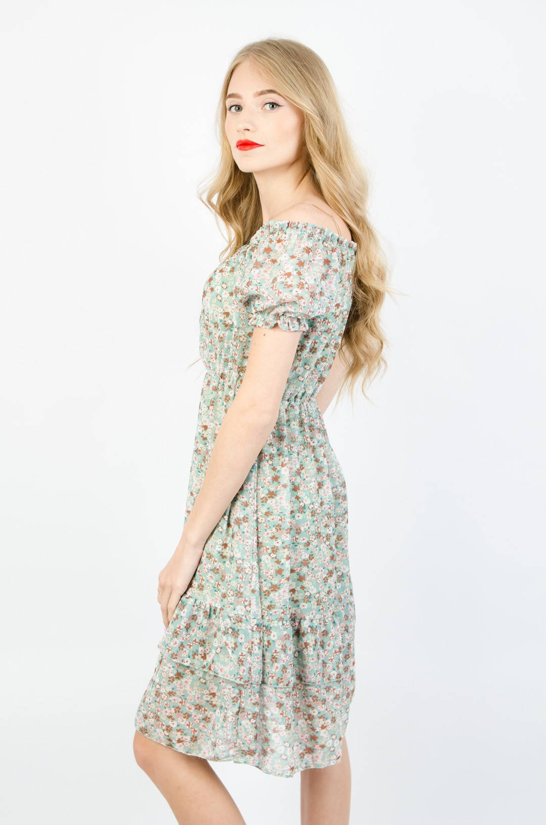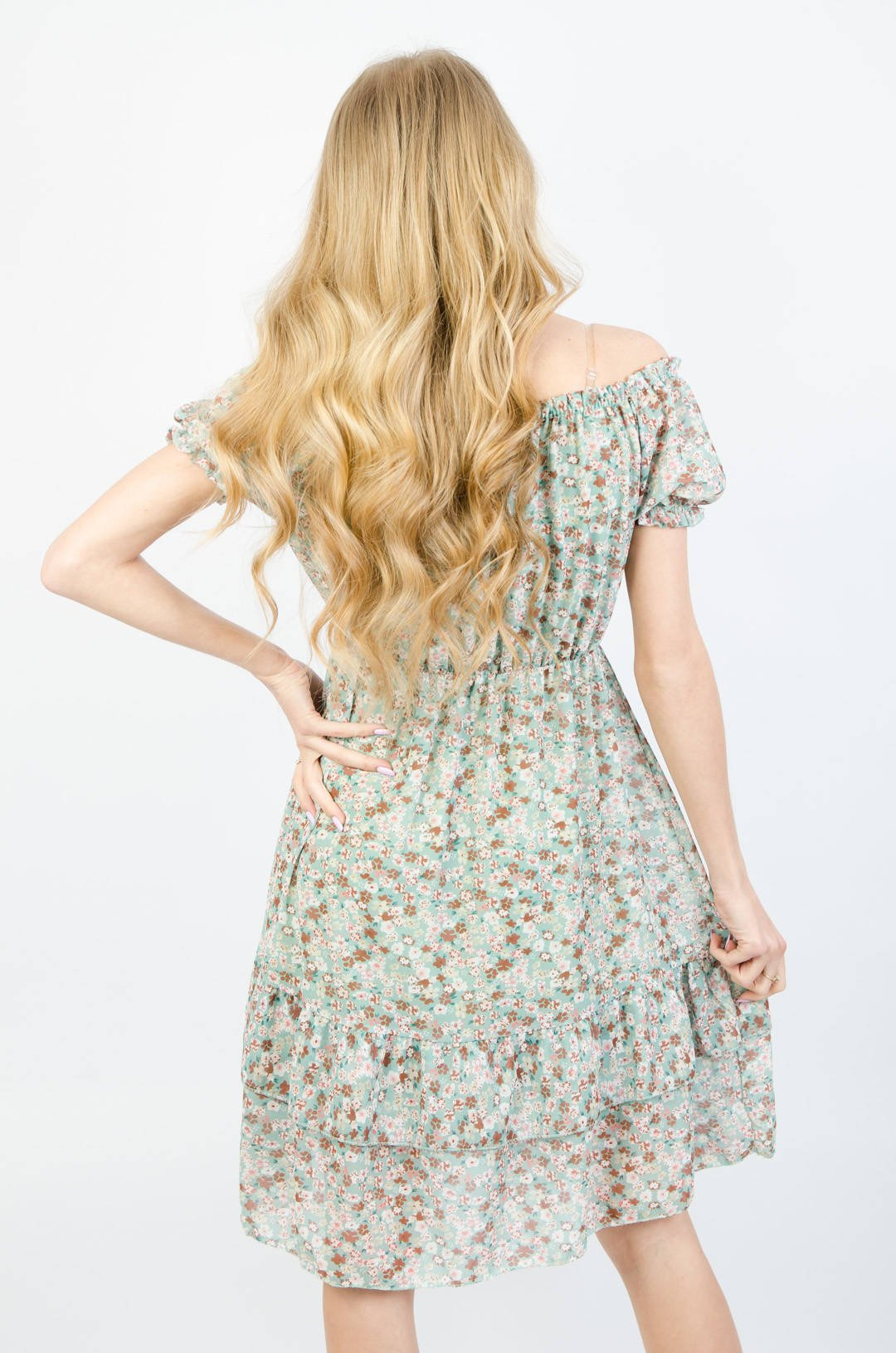 ZIELONA SUKIENKA HISZPANKA Z KWIATOWYM WZOREM