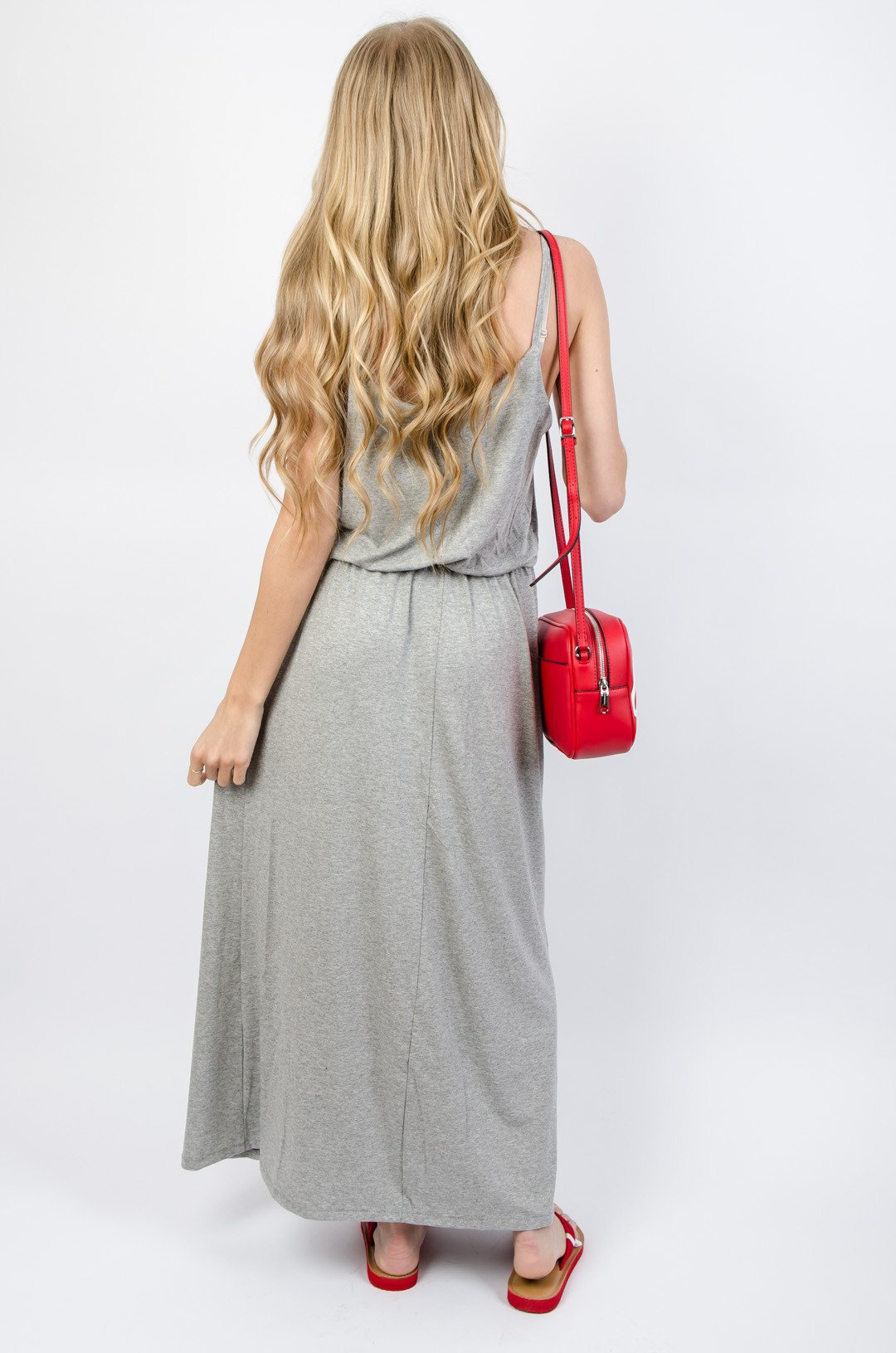 DŁUGA DZIANINOWA SUKIENKA MAXI - SZARA