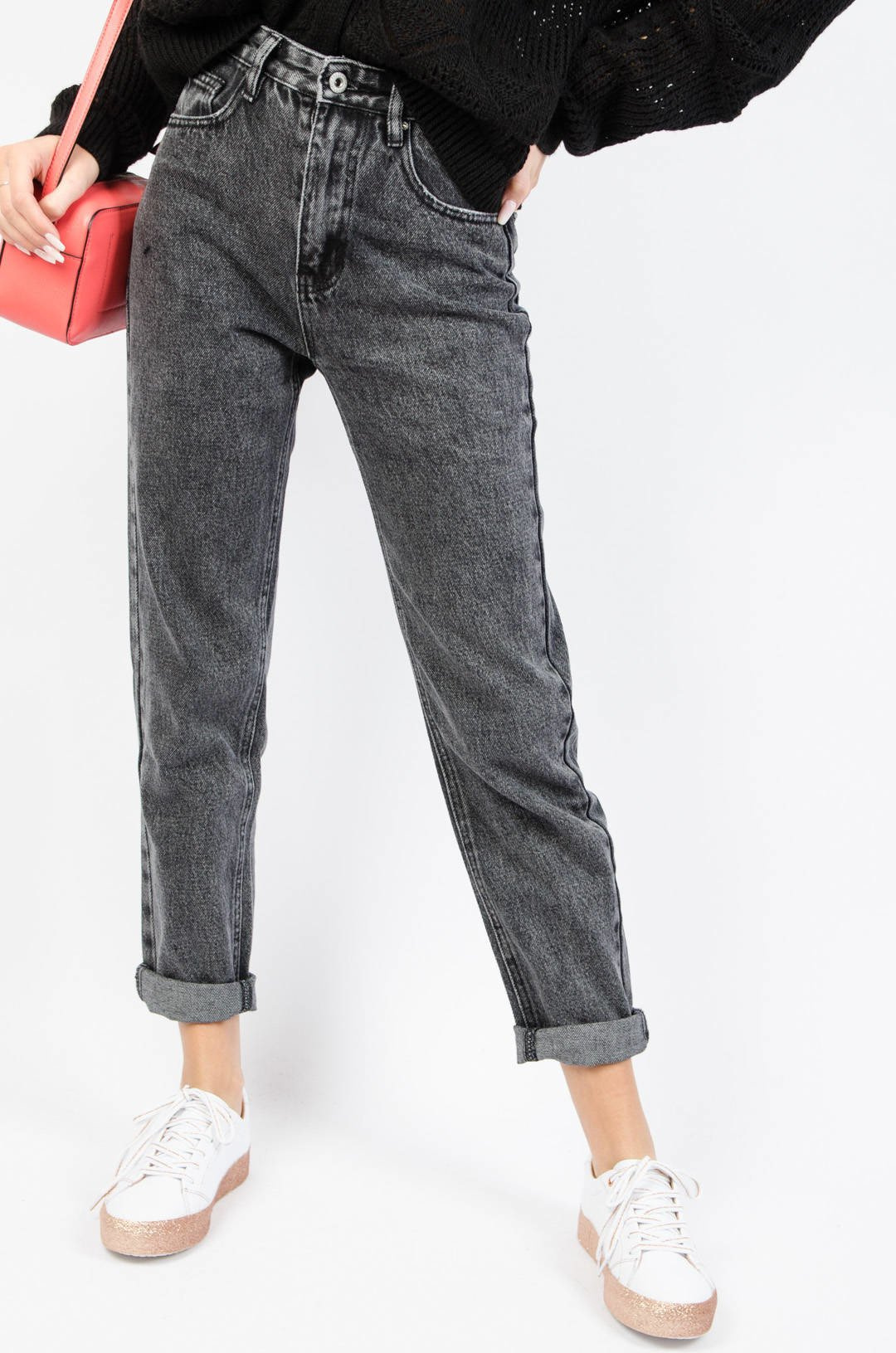 CIEMNO-SZARE SPODNIE JEANSOWE MOM FIT