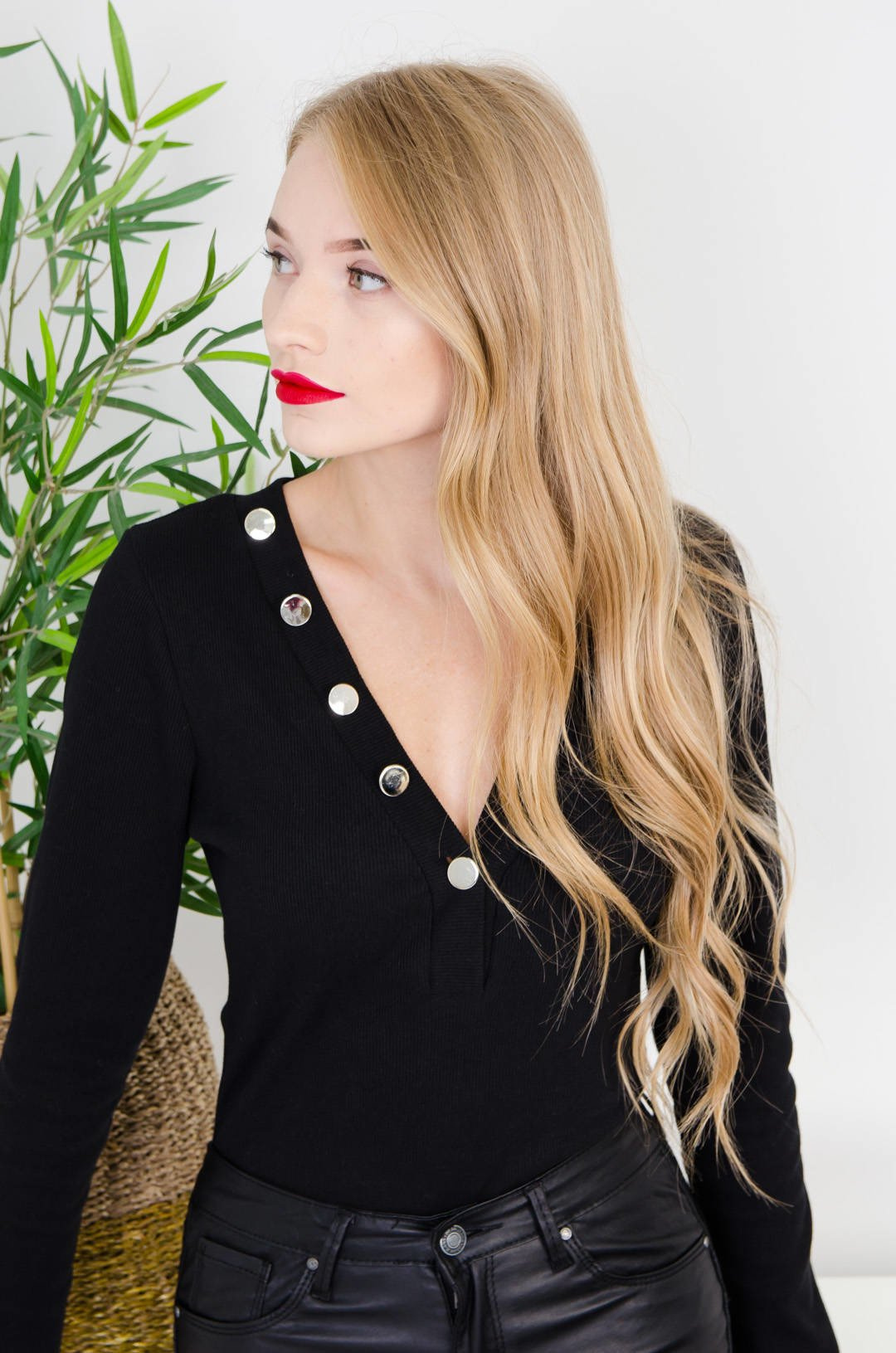 CZARNE PRĄŻKOWANE BODY ZE ZŁOTYMI GUZIKAMI