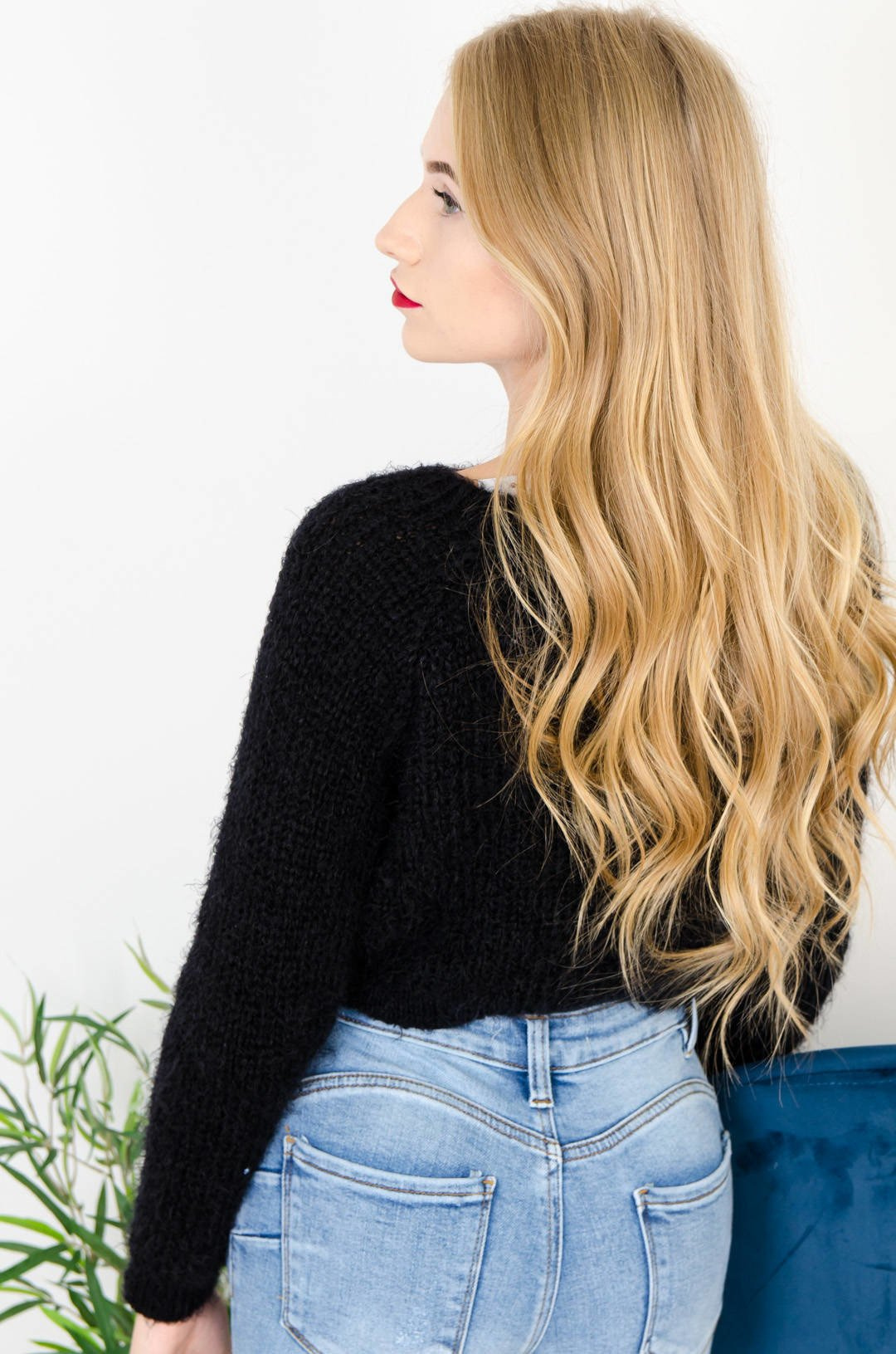 CZARNY KRÓTKI WŁOCHATY SWETER