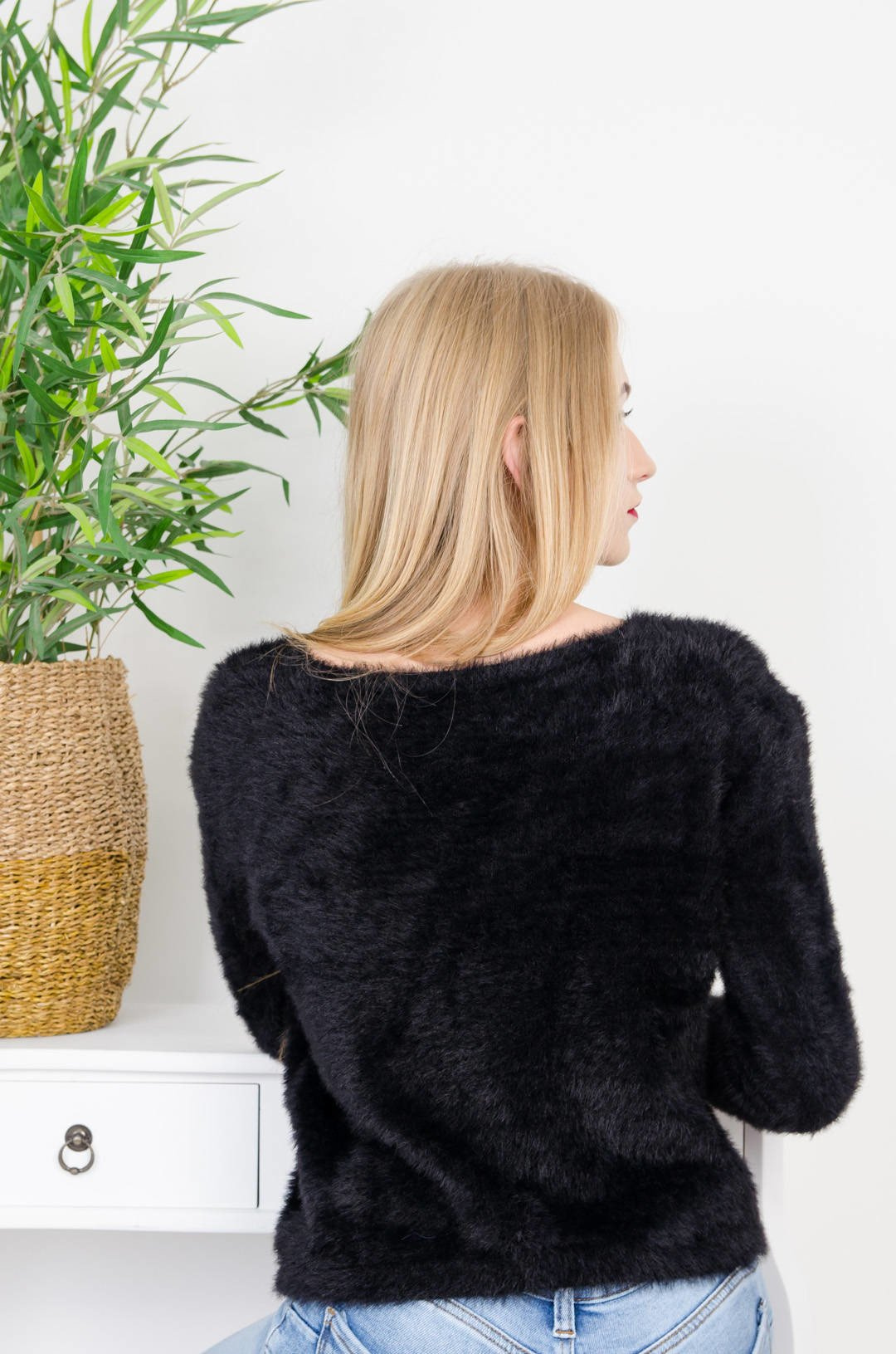CZARNY WŁOCHATY SWETER Z DEKOLTEM W SEREK