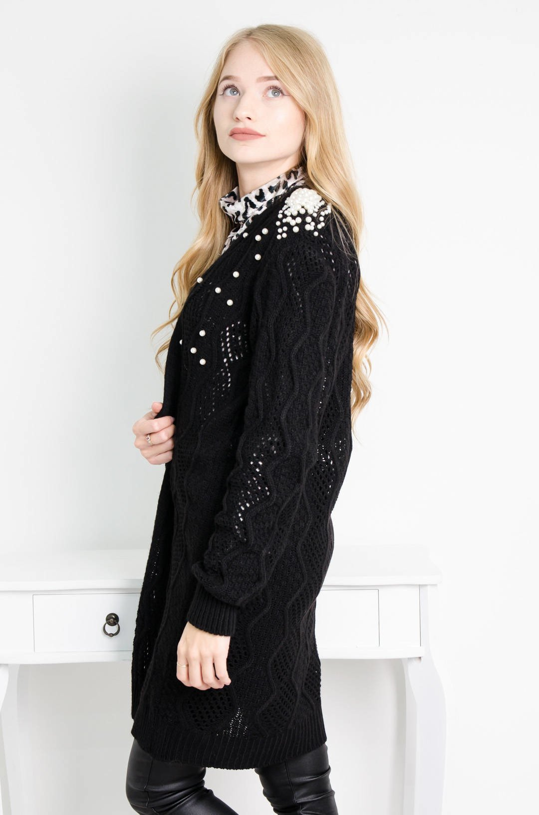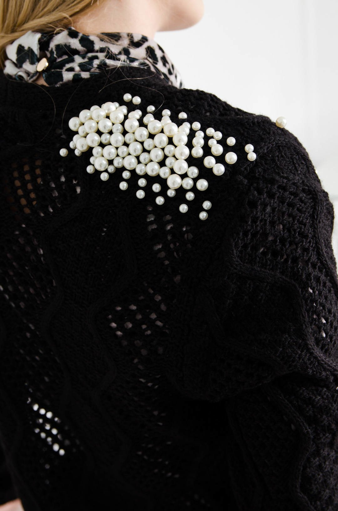 CZARNY DŁUGI SWETER Z PEREŁKAMI