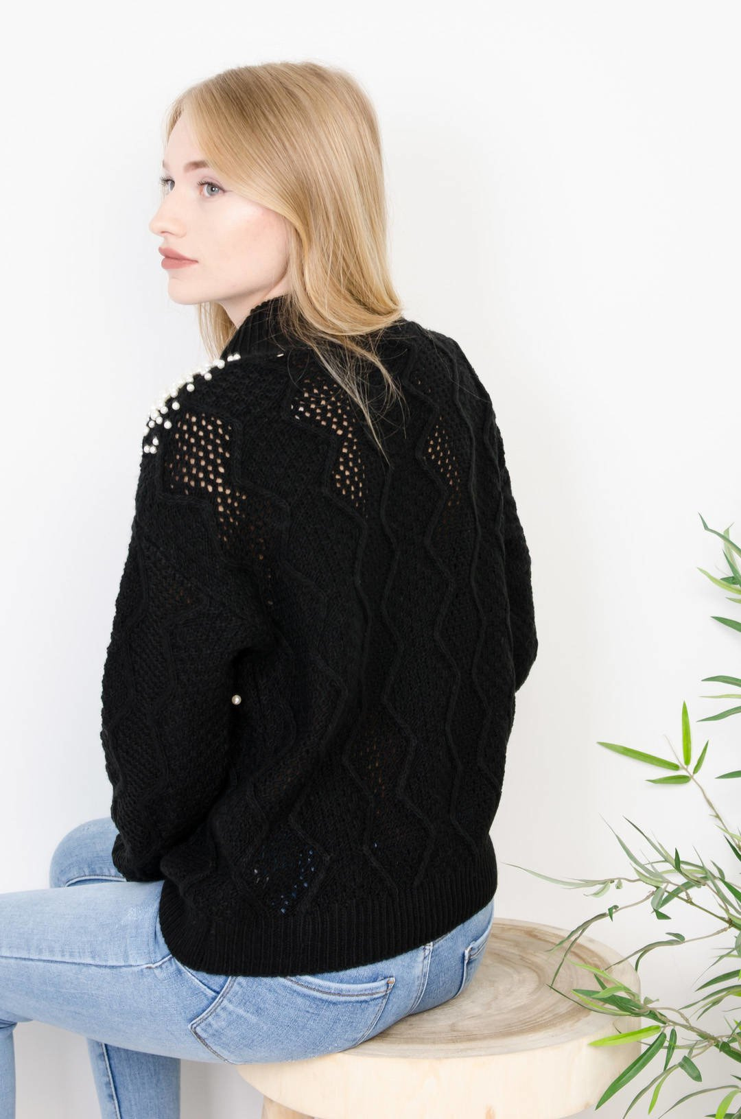 CZARNY SWETER PÓŁGOLF Z PEREŁKAMI