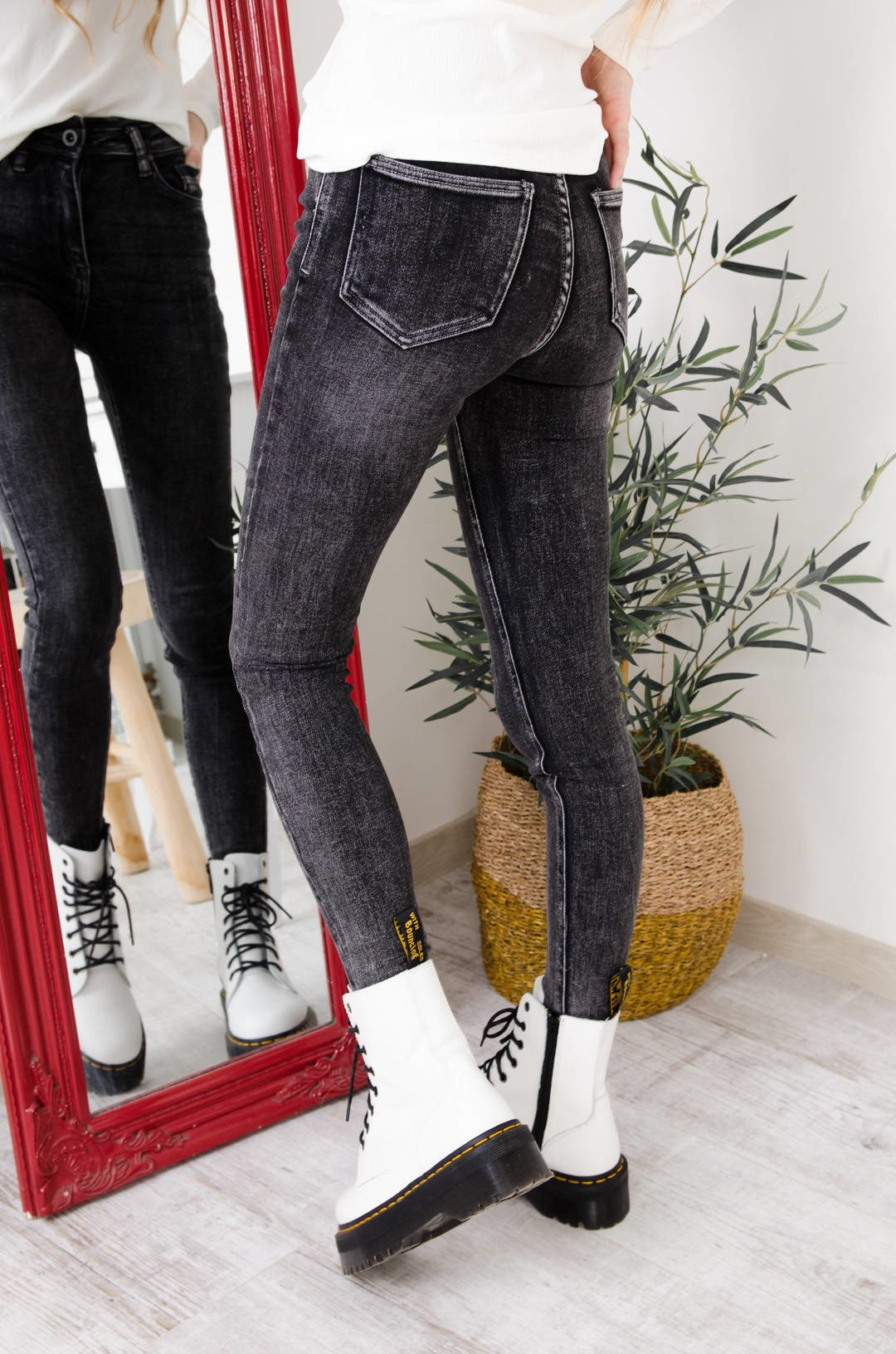 CZARNE JEANSY Z EFEKTEM SPRANIA-WYSOKI STAN