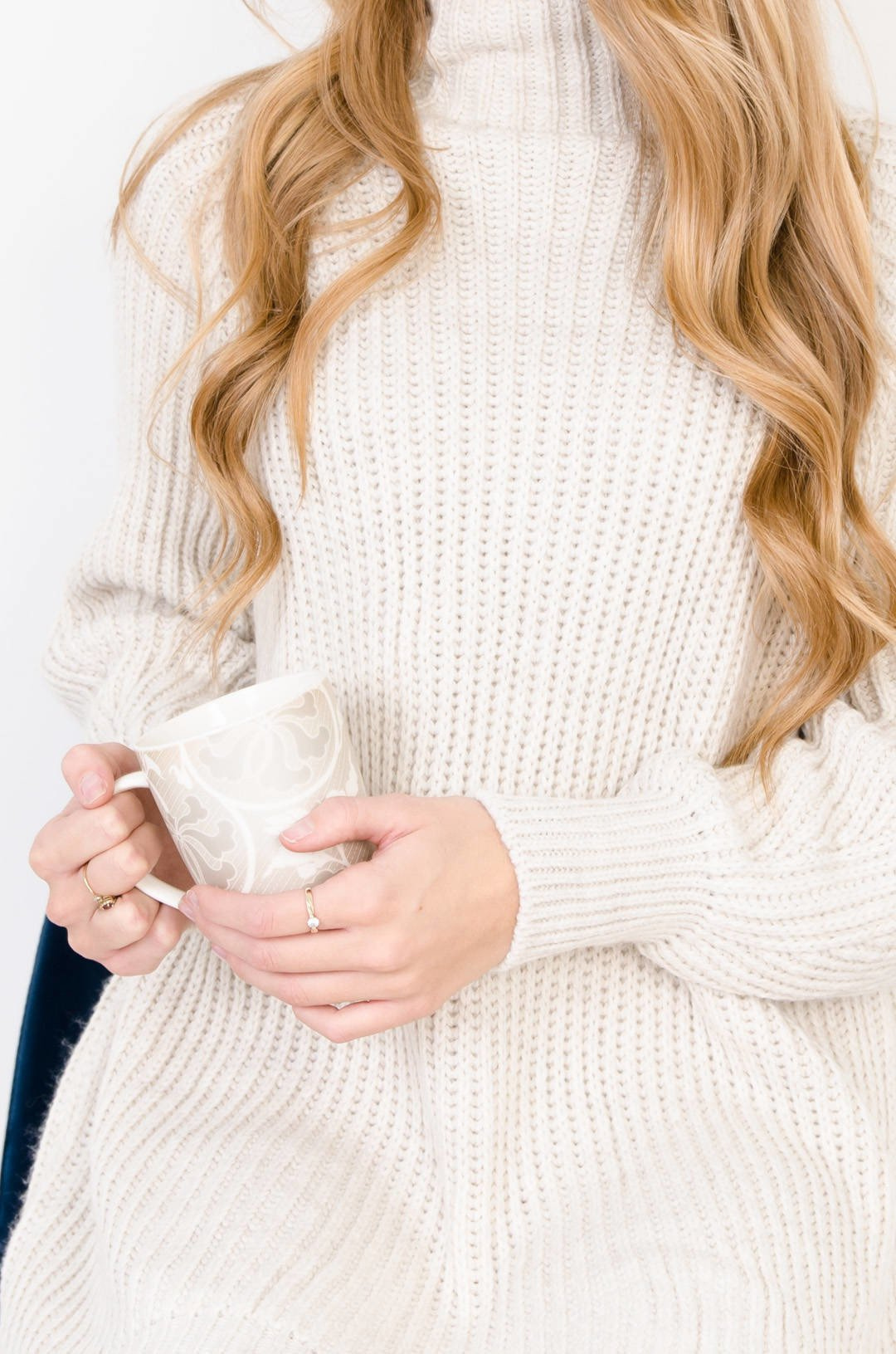 DŁUGI BEŻOWY SWETER Z PÓŁGOLFEM