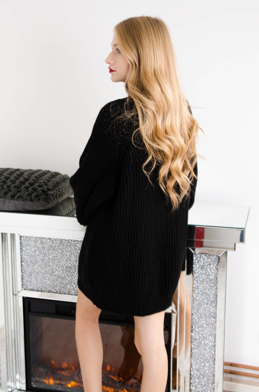 DŁUGI CZARNY SWETER Z PÓŁGOLFEM