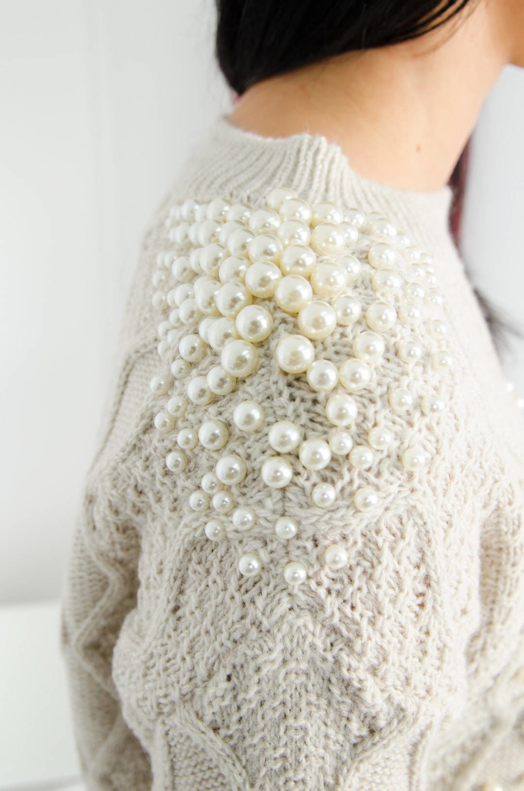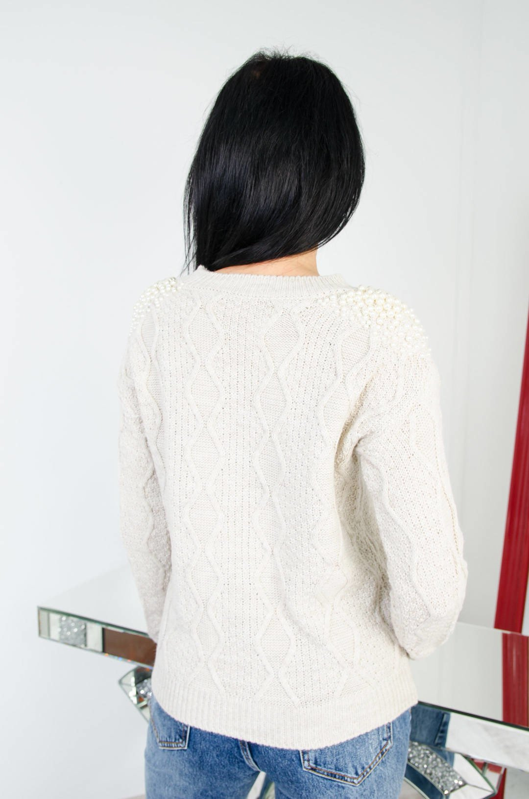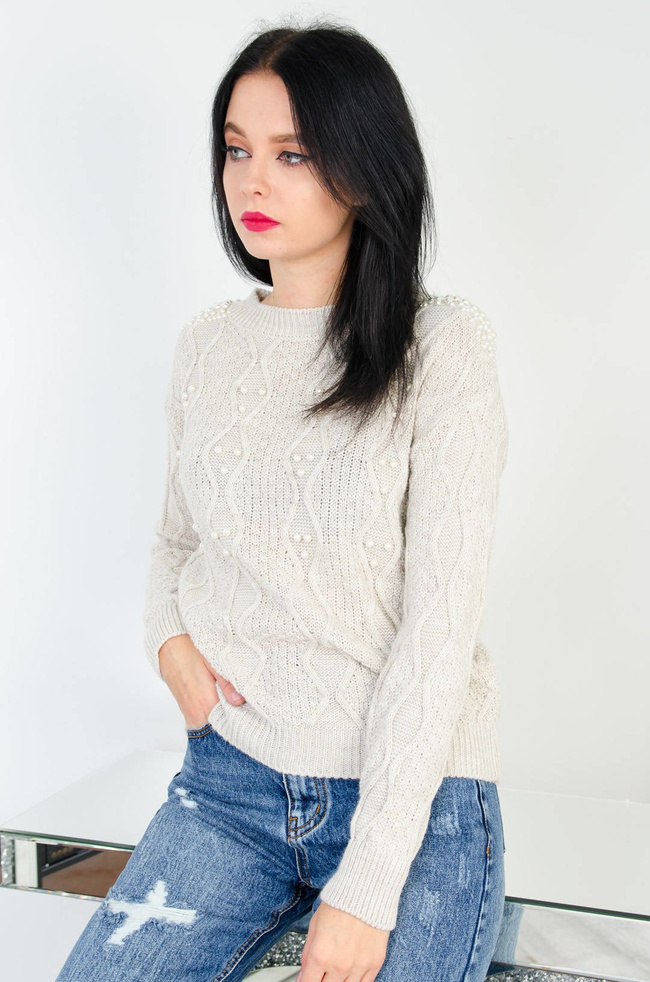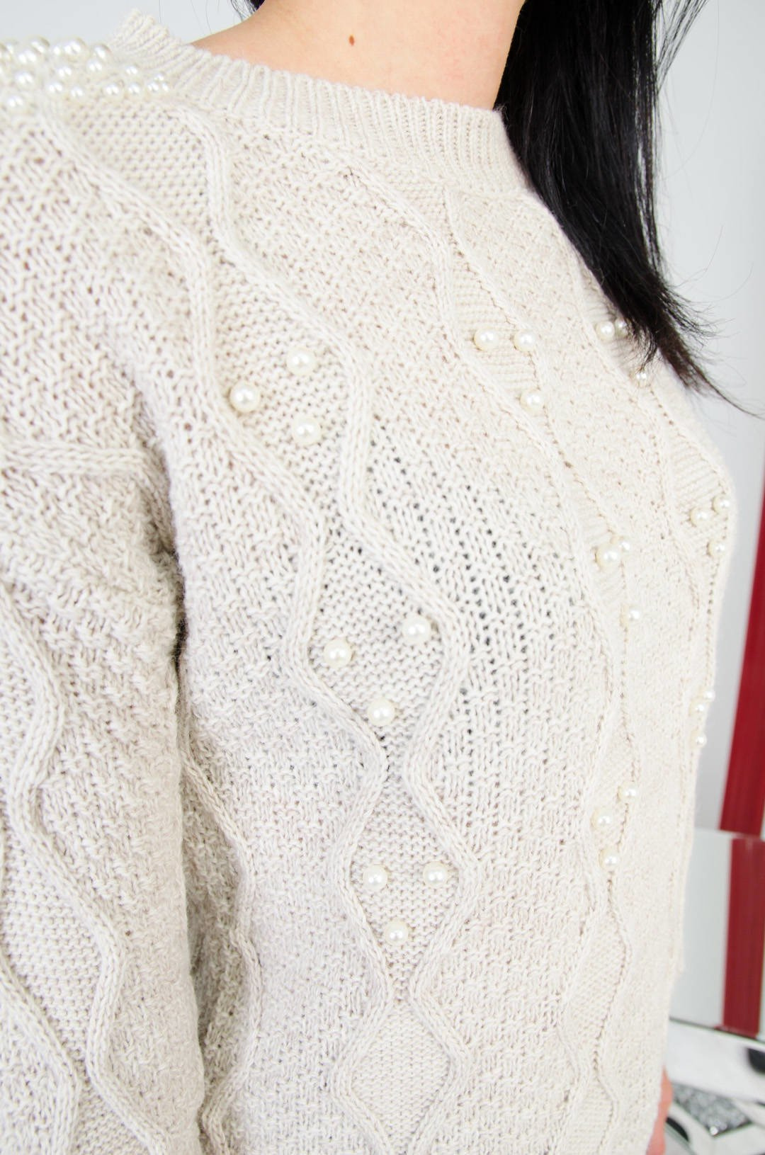 SWETER Z PEREŁKAMI W KOLRZE CIEMNEGO BEŻU