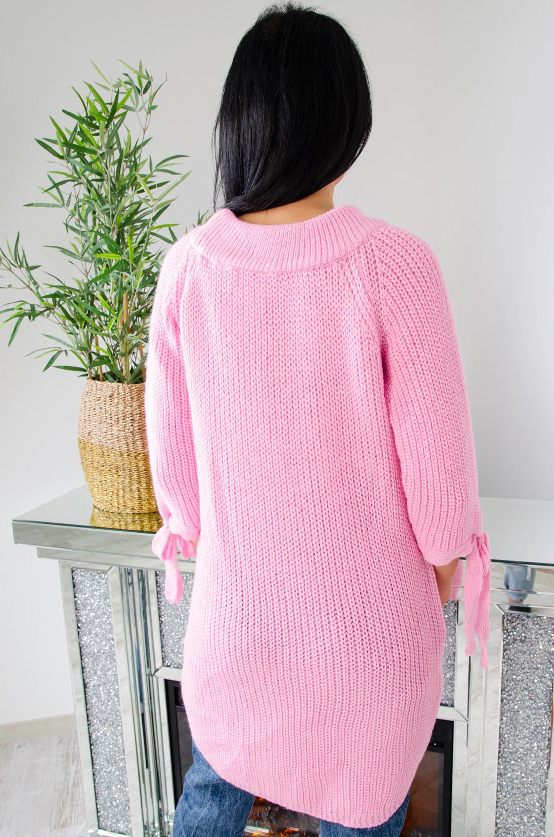 DŁUGI SWETER-SUKIENKA Z WIĄZANIEM NA RĘKAWACH