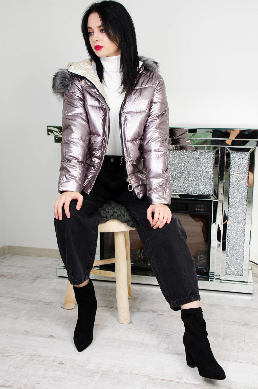 METALICZNA PIKOWANA KURTKA W KOLORZE RÓŻOWYM