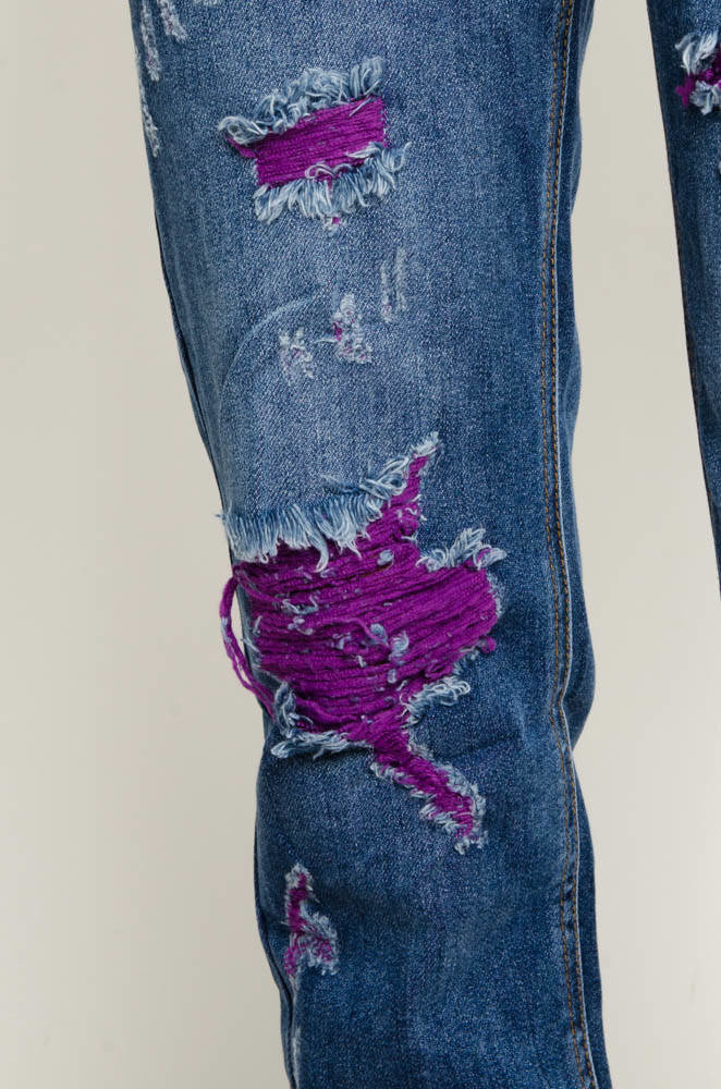 SPODNIE JENSOWE MOM FIT Z FIOLETOWYMI PRZETARCIAMI