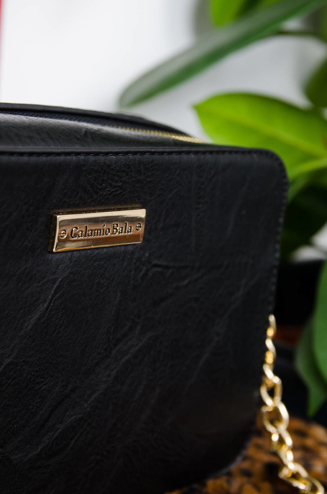 CZARNA TOREBKA TYPU KUFEREK NA ZŁOTYM ŁAŃCUSZKU