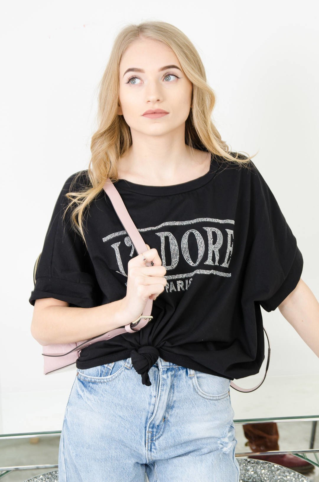 CZARNA BLUZKA OVERSIZE Z NAPISEM J'ADORE PARIS