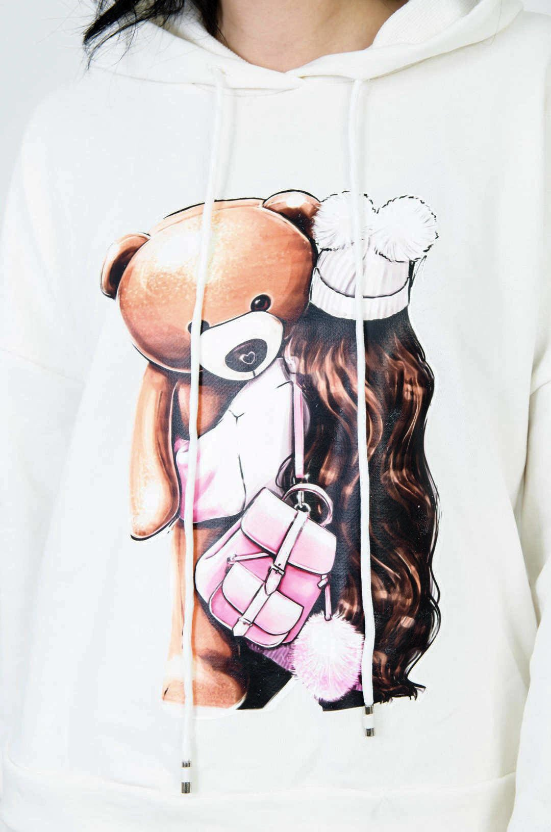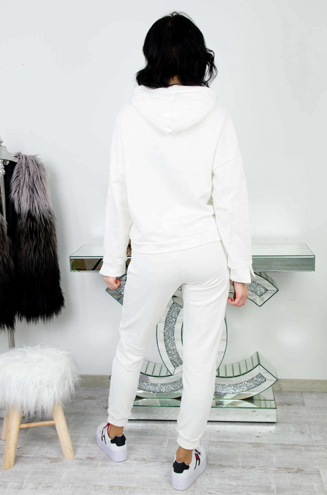 BIAŁY KOMPLET DRESOWY BLUZA + SPODNIE O LUŹNYM KROJU