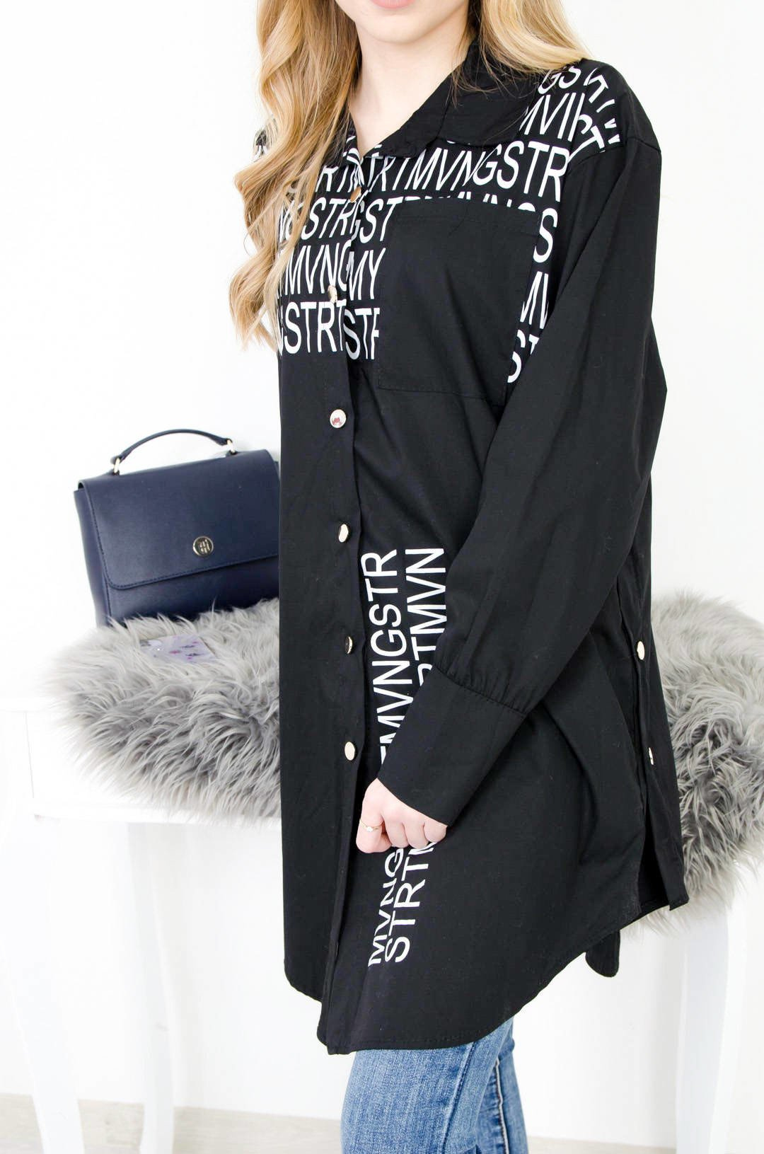 DŁUGA CZARNA KOSZULA Z NAPISAMI