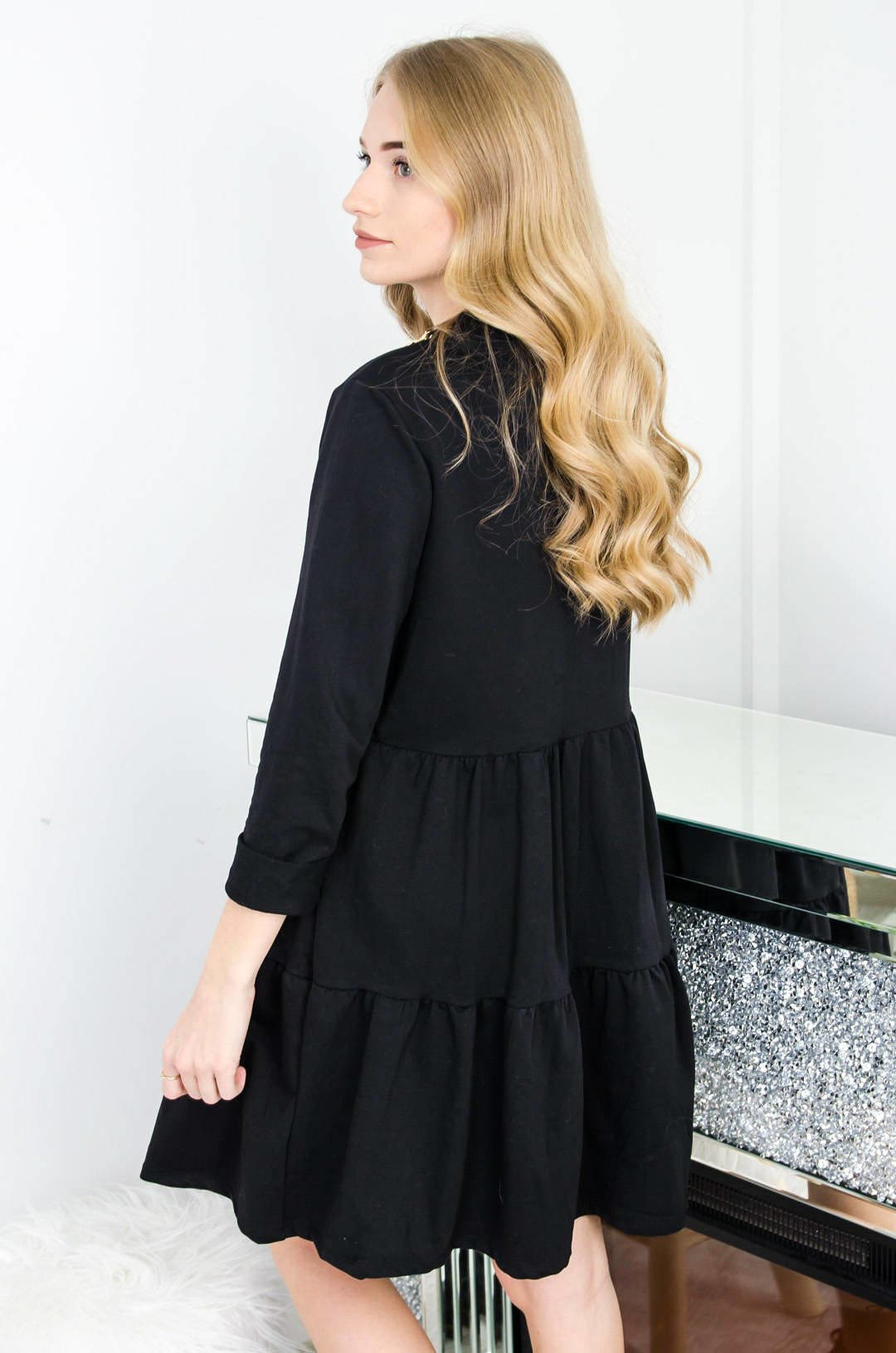 CZARNA ROZKLOSZOWANA SUKIENKA ZE ZŁOTYM ŁAŃCUSZKIEM