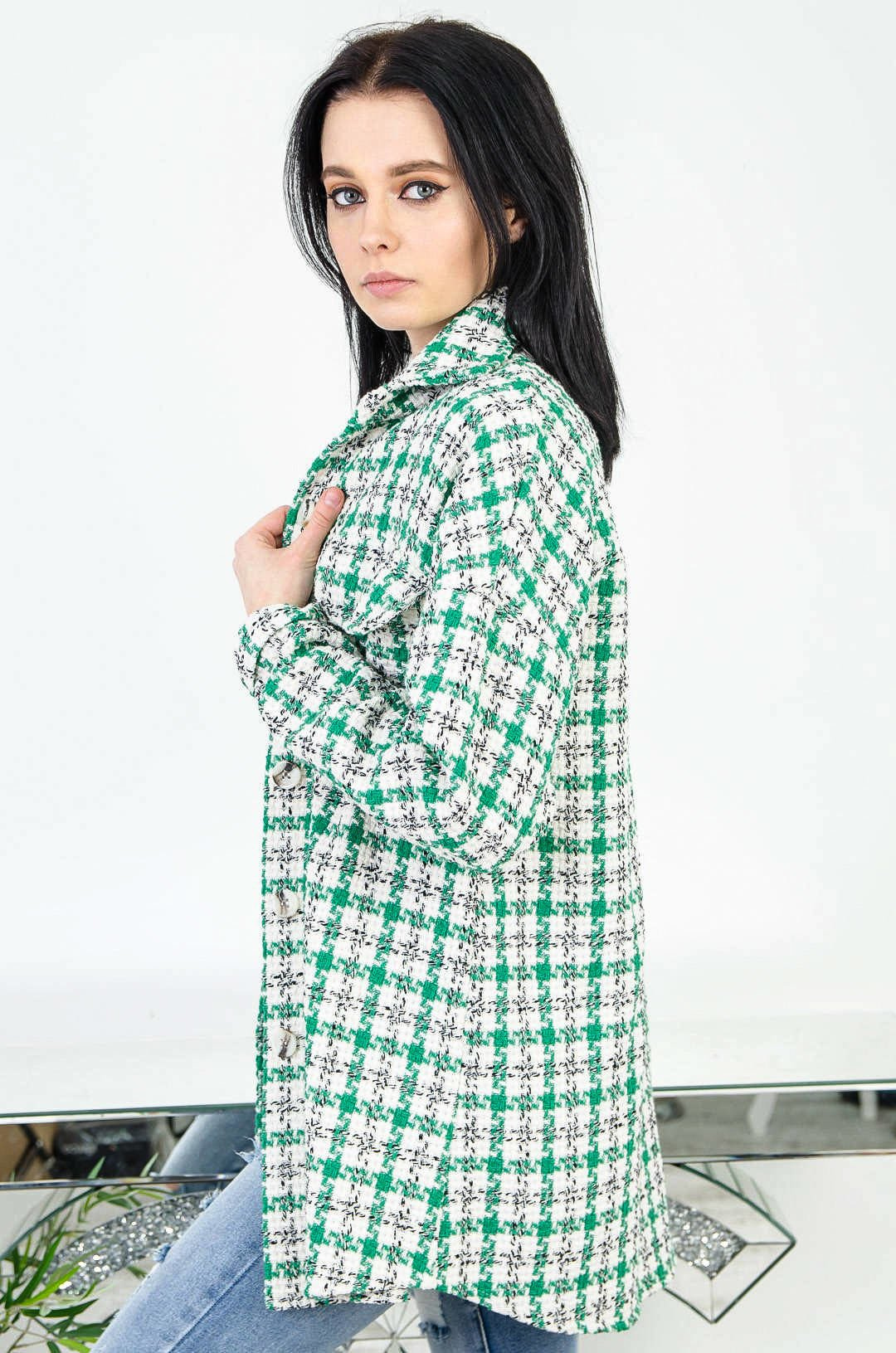 NARZUTA KOSZULOWA W BIAŁO-ZIELONĄ PEPITKĘ