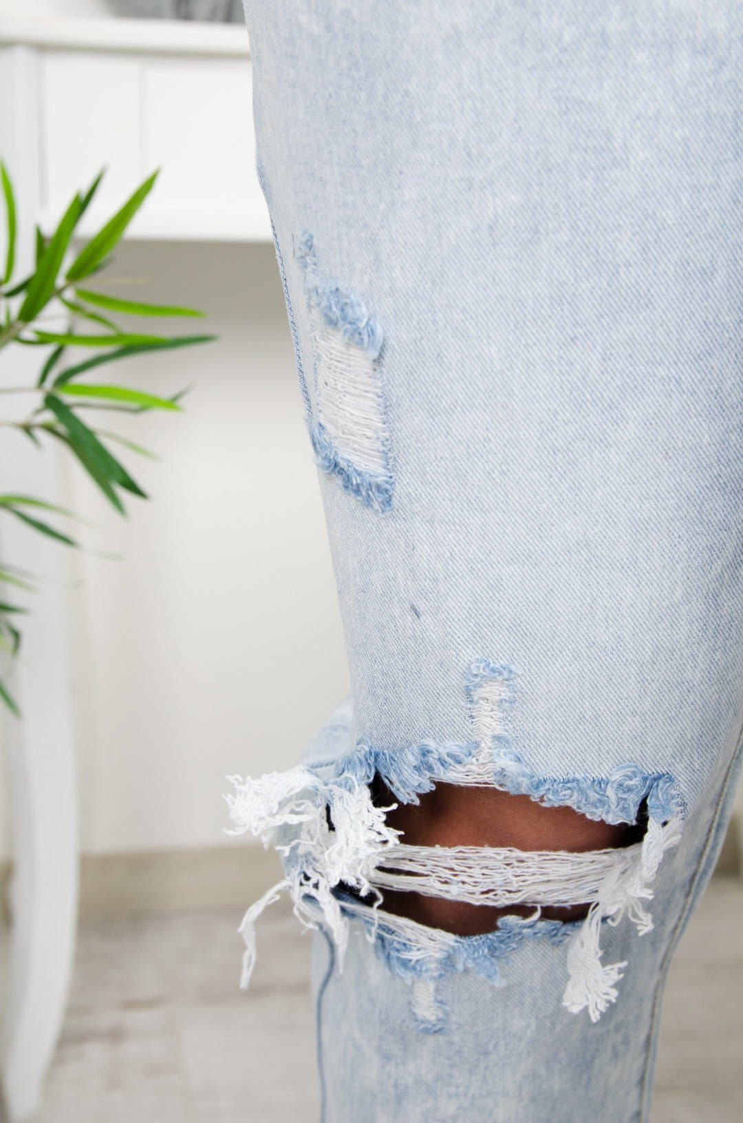JASNE SPODNIE JEANSOWE BOYFRIEND Z WYSOKIM STANEM - DEKATYZOWANE