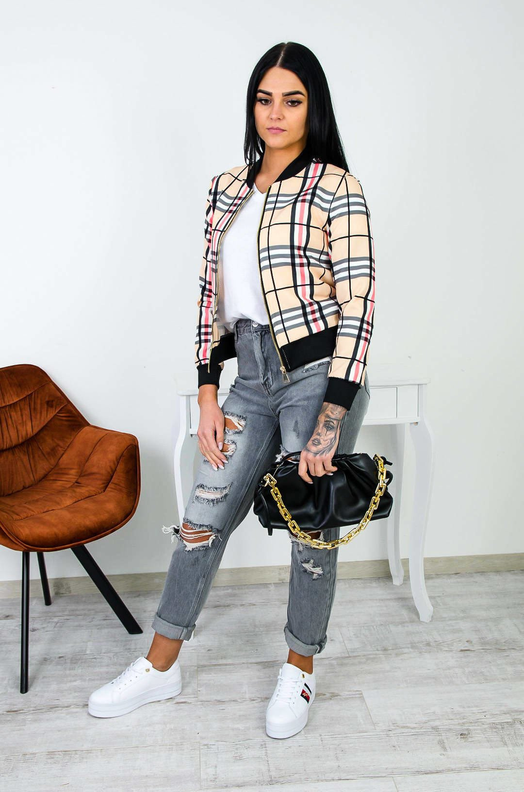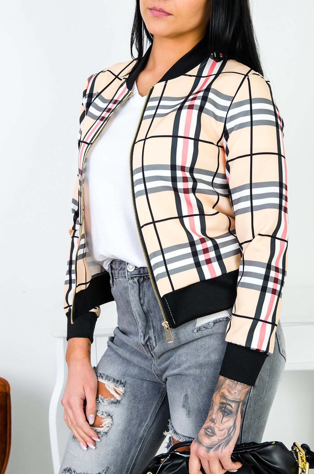 BEŻOWA BLUZA BOMBERKA W KARATĘ ( S-L )