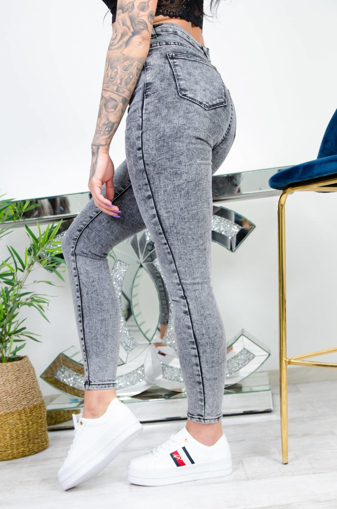 SZARE SPODNIE JEANSOWE Z GUZIKAMI - WYSOKI STAN