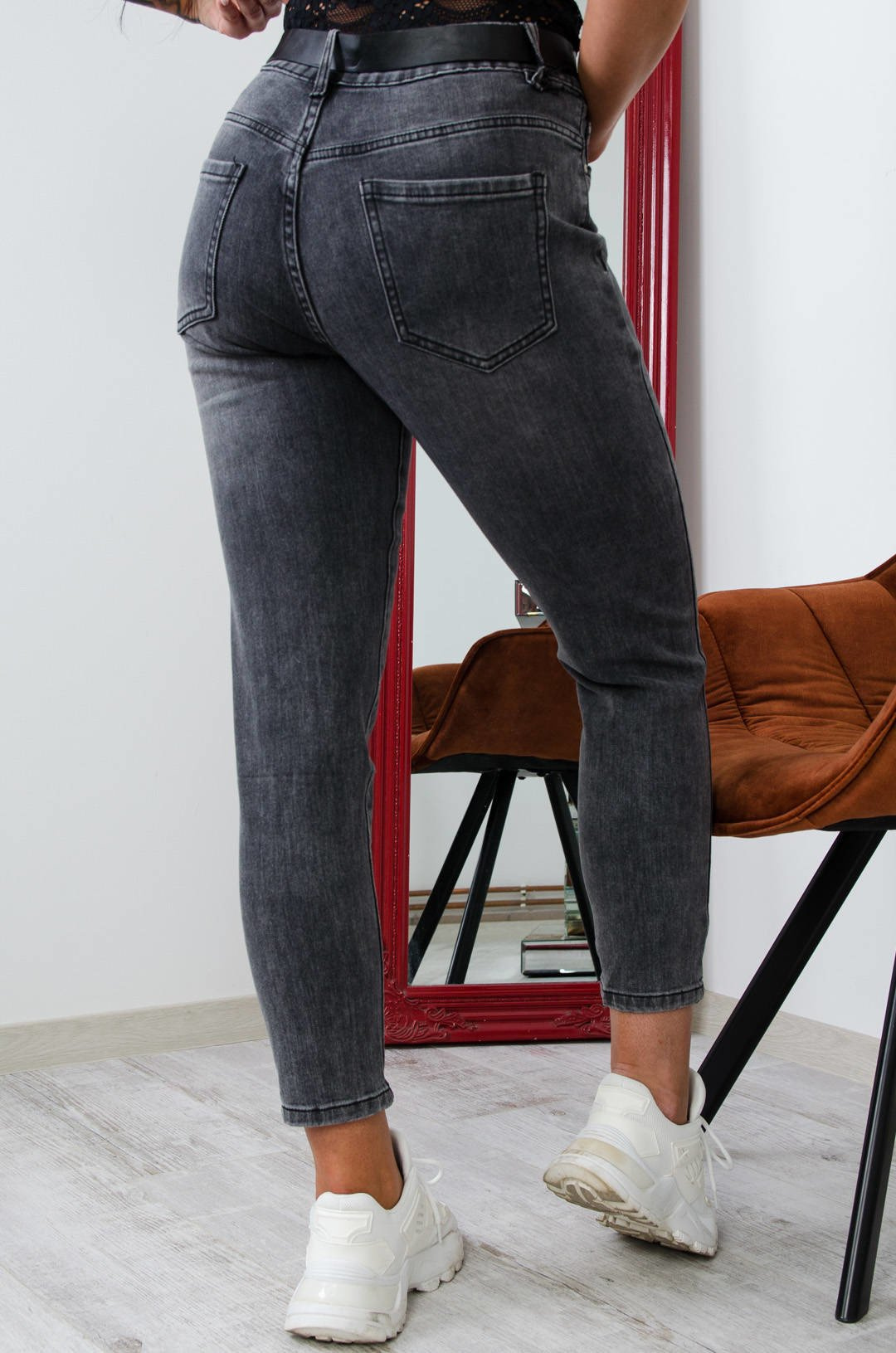 CIEMNO SZARE SPODNIE JEANSOWE Z PASKIEM W ZESTAWIE-WYSOKI STAN
