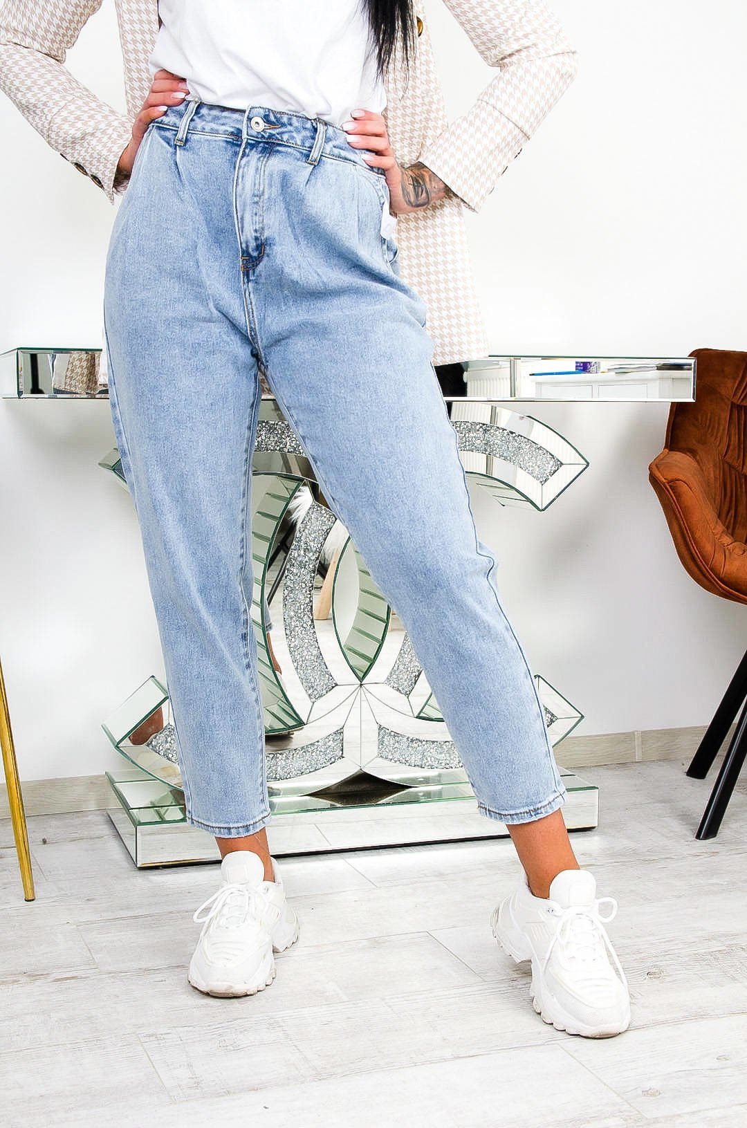 JASNE JEANSY MOM FIT Z GUMĄ W PASIE-WYSOKI STAN